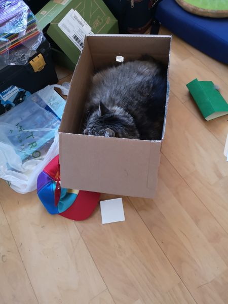 ister: Junior "zbudował" kotu domek. Domek jest ładnie pomalowany i ma okien ka nawet :) |