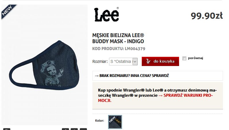 qmack: promocyjnie do dżinsów dostałam wczoraj maseczkę. Ładną. dzisiaj patrzę online i nie wierzę. poyebao? STÓWĘ za kawałek szmaty? |