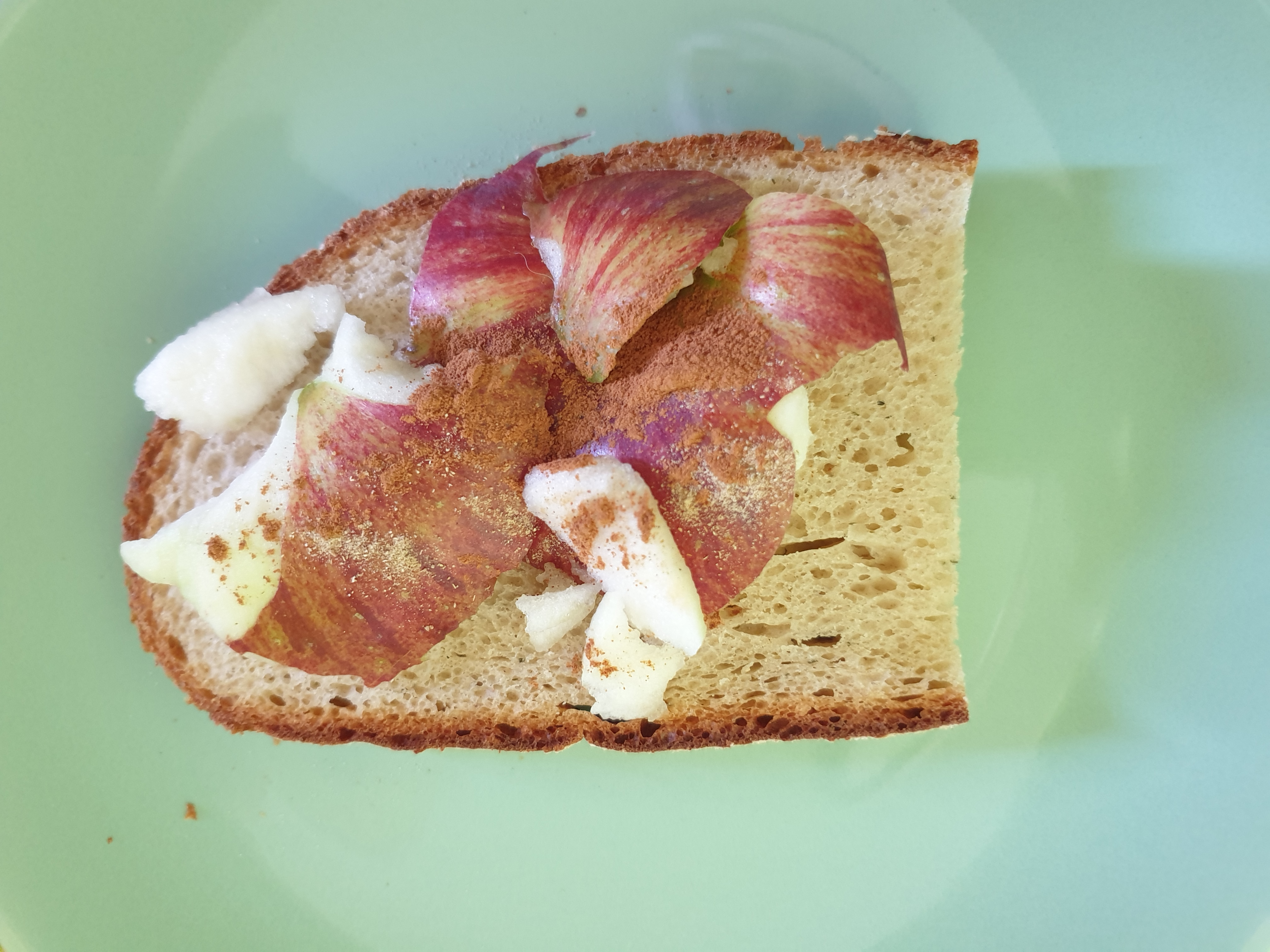 erwen: Dostałam śniadanie do łóżka - kanapkę z jabłkiem, cynamonem i kardamonem. Bez laktozy, mamusiu. |