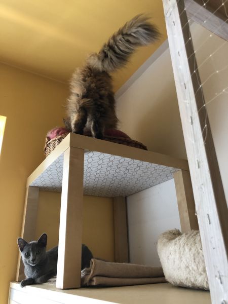tygryziolek: jeszcze pierdyknęłam okleiną dół ikeowskiego stoliczka, który robi za kocią budkę. jak ładnie teraz :) |