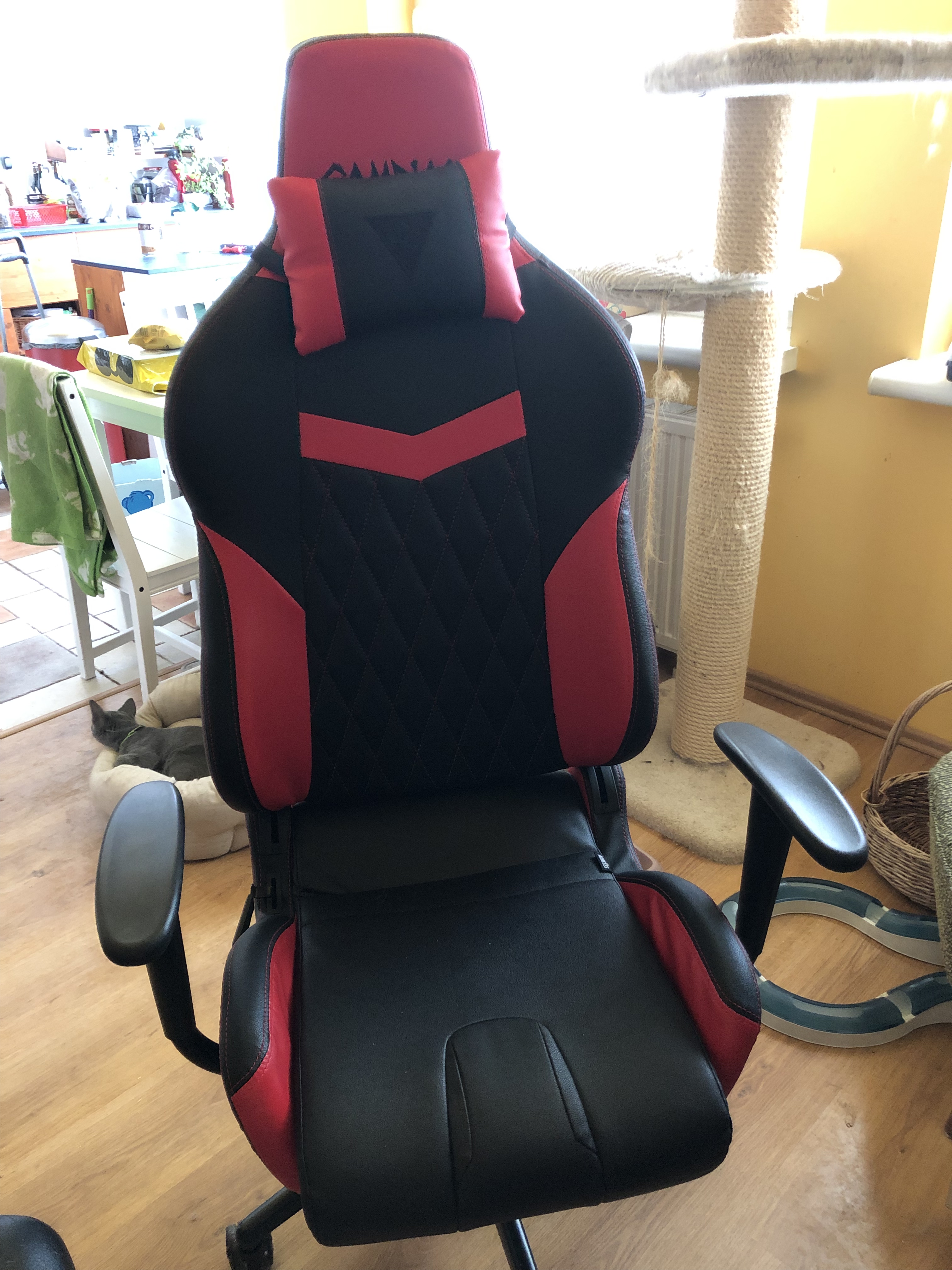 tygryziolek: kupiłam fotel, żeby odciążyć umęczony ciągłym siedzeniem tyłek. teraz się zastanawiam jak ukryć tej radosny kolorystycznie dizajn, który mi nie pasuje do niczego |