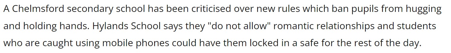 foo: Stop bullying to ja rozumiem, ale całkowity zakaz JAKIEGOKOLWIEK dotyku dla nastolatków? Chyba nie tędy droga, drogie UK. [www.essexlive.news] |