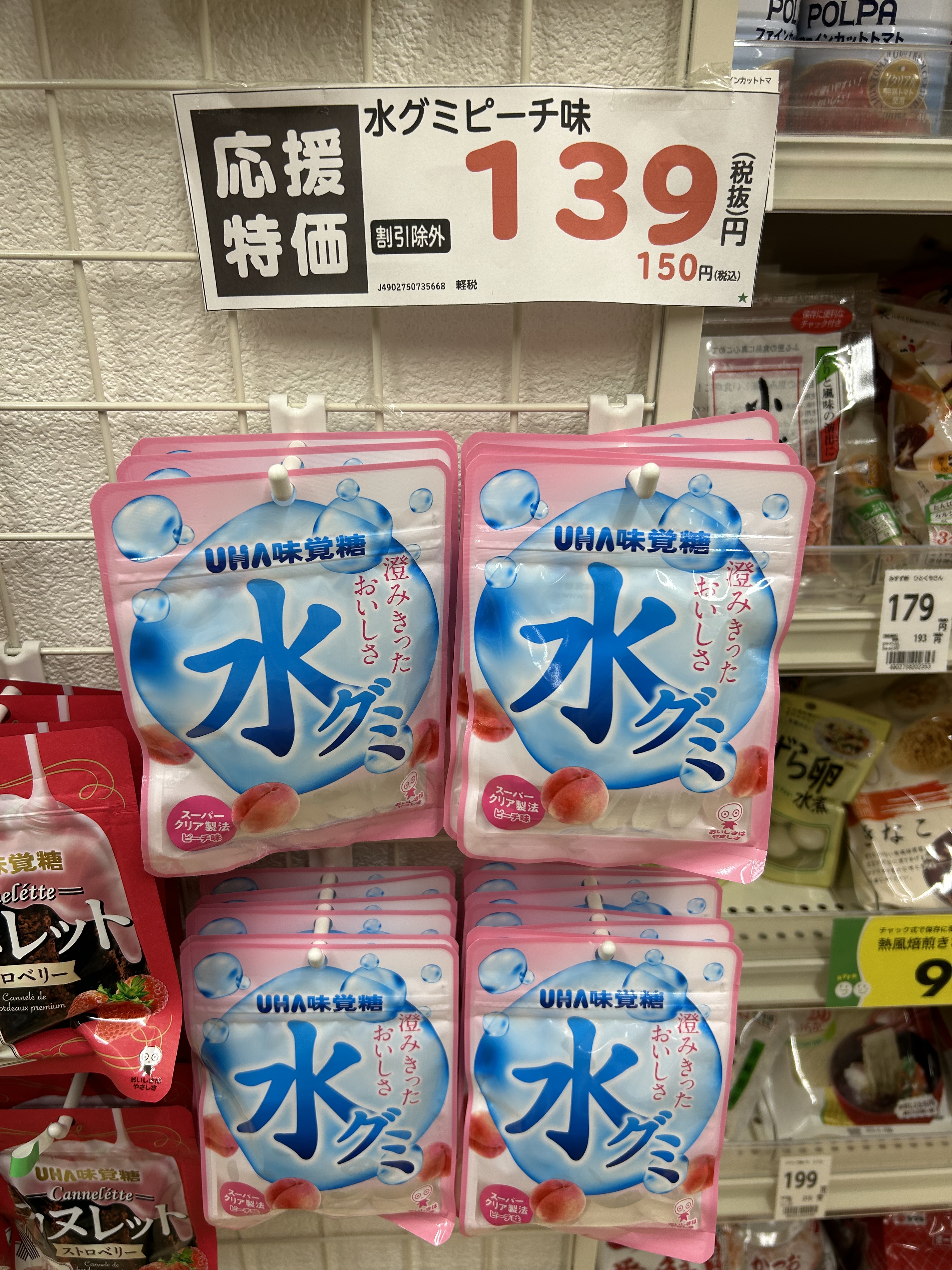 aniaklara: przed biblioteką zajrzałam do sklepu, żeby sobie jakiś napój kupić; oglądam potem czekoladki, nic mnie nie kusi, wtem! gumiaczki o smaku wody! a dokładniej, wodne gumiaczki o smaku brzoskwini, biorę! #kioto |