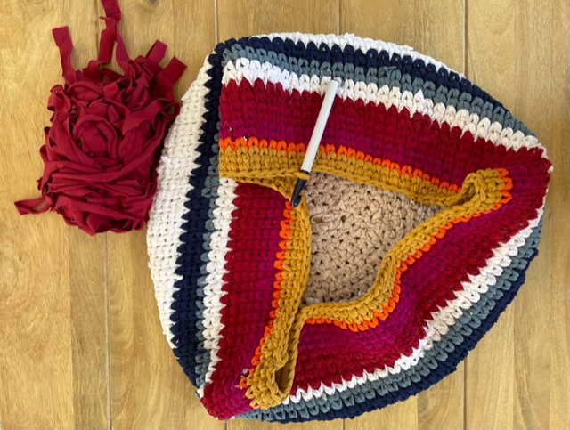 soupe: [^soupe] odpowiadajac na Wasze pytania dotyczace produkcji mojego kosza na pranie: mierzy juz 20 cm wysokosci i pozarl 12,5 t-shirta. 13ty juz pociety w paski lezy obok |