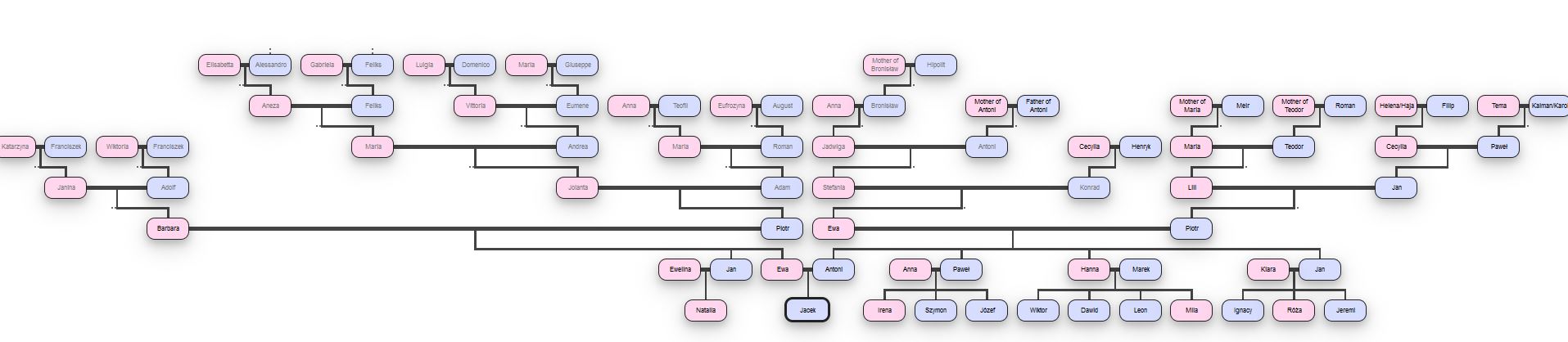 srebrna: [^shigella] U mnie może zlokalizowałoby jakieś pojedyncze dodatkowe osoby, ale nie mam DZIUR w drzewku. Tu jest na 6 pokoleń w górę od Jacka, i naprawdę, nie widzę wiele szans na NIESPODZIANKI :) |