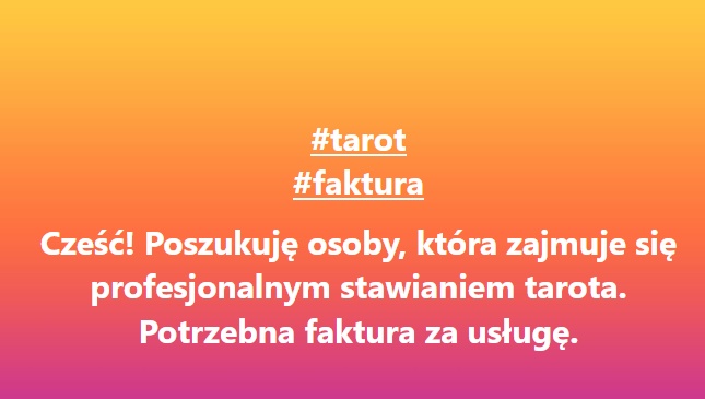 erwen: Tymczasem na lokalnej grupie. Faktura za postawienie tarota. Ja jebię, co się dzieje z tym światem. |