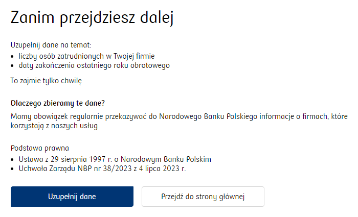 sithian: [^perdo] Przy każdym logowaniu do banku wyświetlają mi ten komunikat. Na szczęście ktoś projektujący chyba ma podobną opinię o pomysłach NBP, bo pozwalają przejść dalej bez uzupełniania. |