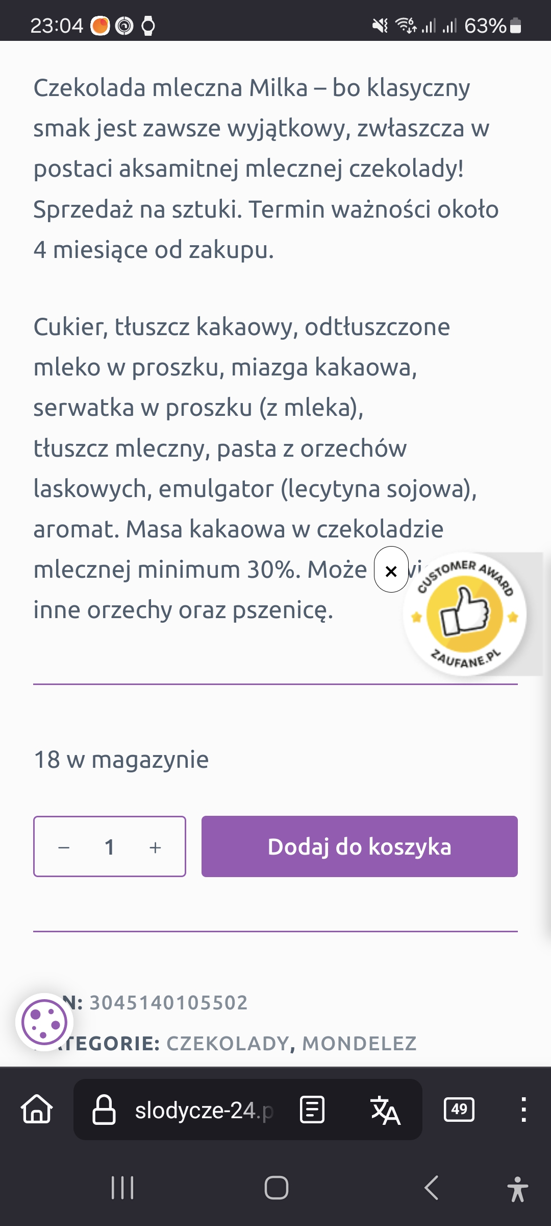 agg: [^sylvana] ale co jest nie tak z Milką? Z pierwszego sklepu z brzegu, skład ok |