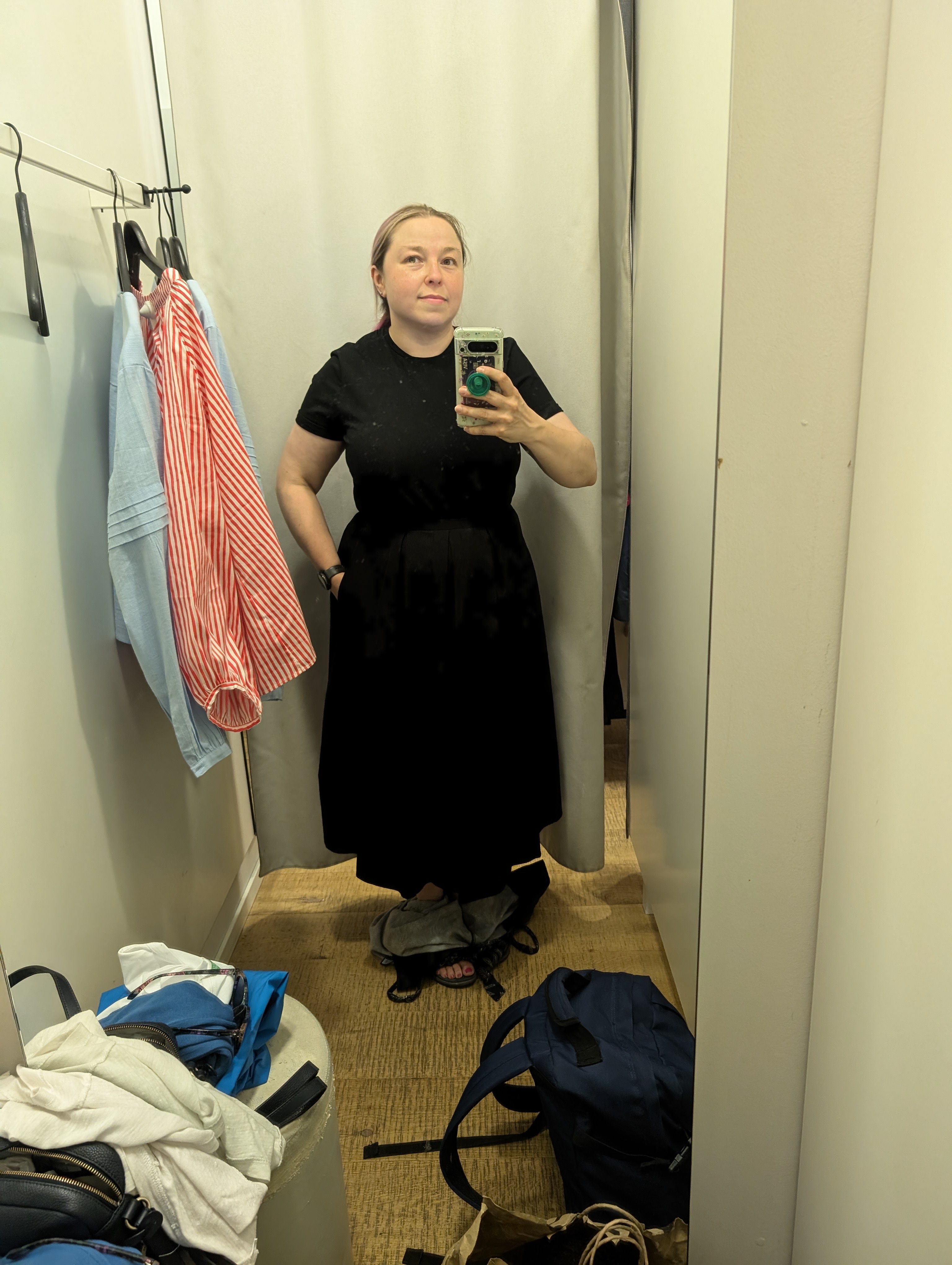 foo: [^agg] Kocham mieć coraz bardziej wolną od ograniczeń głowę, nie przychodzi bezboleśnie, ale np. wymieniłam bezpieczną kieckę A na dopasowaną maxi, uznałam, że wyglądam lepiej mimo wałków, państwo wybaczy elegancko zsunięte portki. |