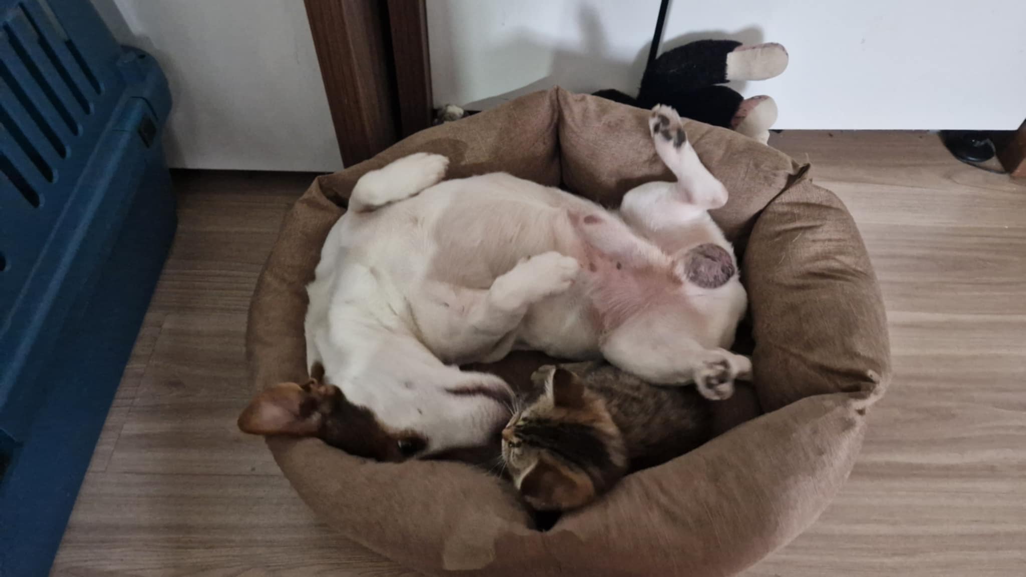 kulkacurly: Mój brat ma psa. I w ubiegłym tygodniu, w piątek przyniósł do domu kota. Kot i pies wczoraj: |
