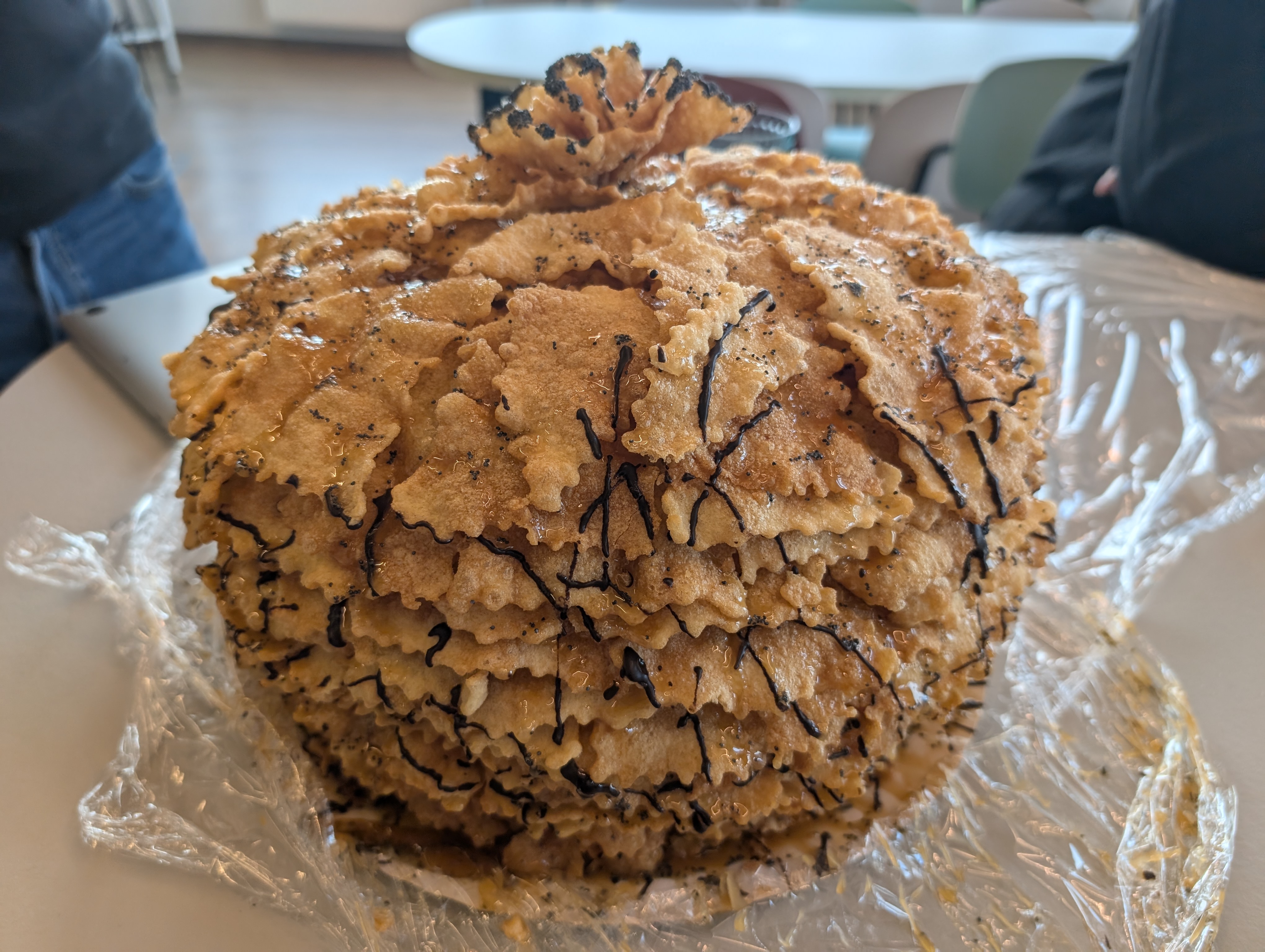 foo: Zapomniałam donieść, że źli ludzie z biura uprawiają agresywne wypasanie glutenem i cukrem. Pastries z piekarnika, cieplutkie, wchodzę do kuchni a tam dryblas Benas w rękawicach kuchennych z blachą :D Albo takie cuda, o! #foolt |