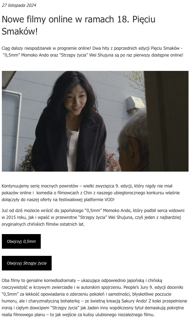 robmar: [^tygryziolek] widziałaś, że dorzucili dwa zeszłoroczne filmy? [www.piecsmakow.pl] |
