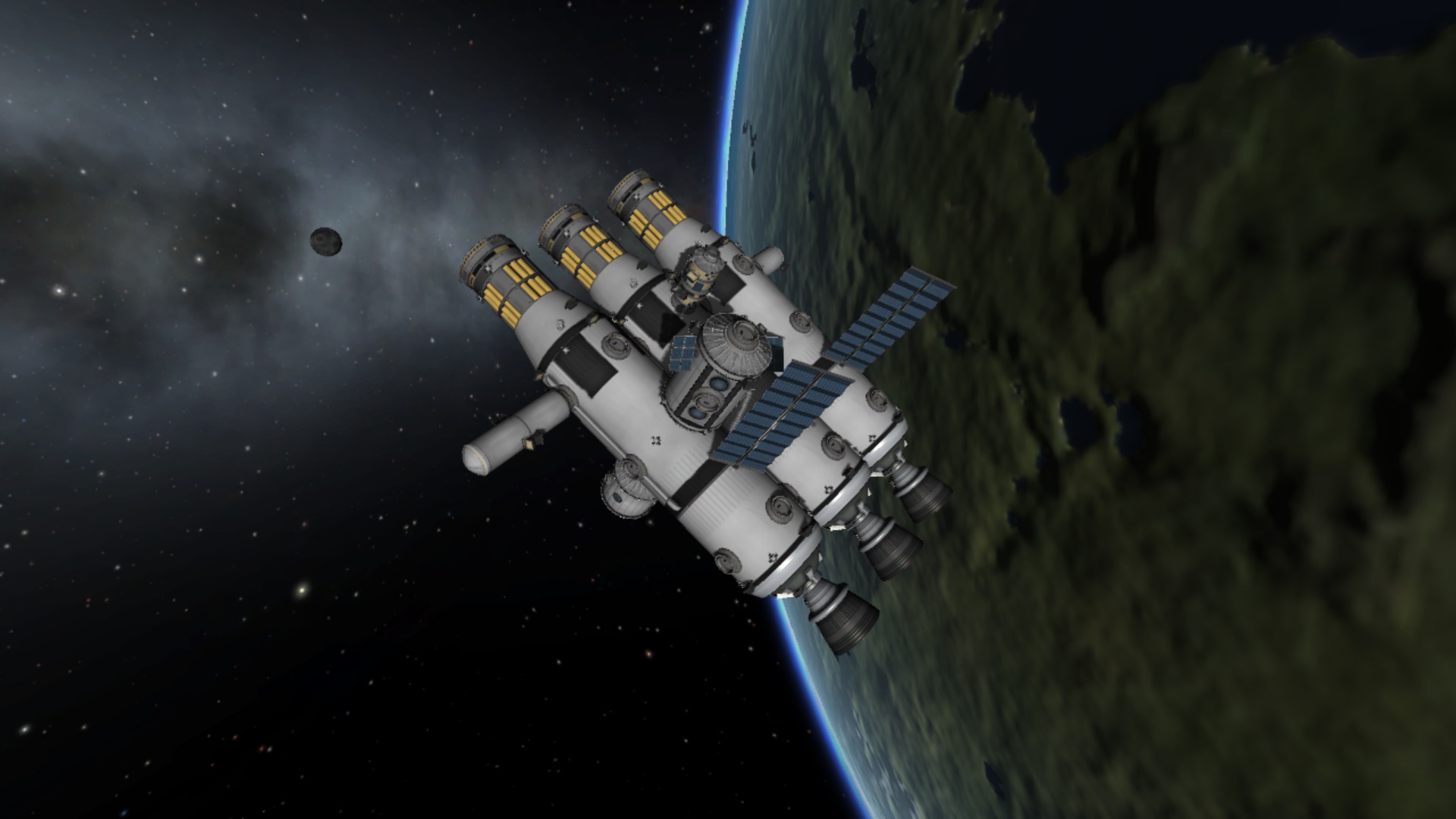 boni01: #kerbal Wczorajsze plany rozbudowy i poprawienia "fundamentów" stacji zrobione (trochę górką, miały być 2 baniaki, ale przez drobny błąd konstrukcyjny, źle umieszczone lampy, wyszło na 3), drobiazgi przełożone, złom wywalony. |