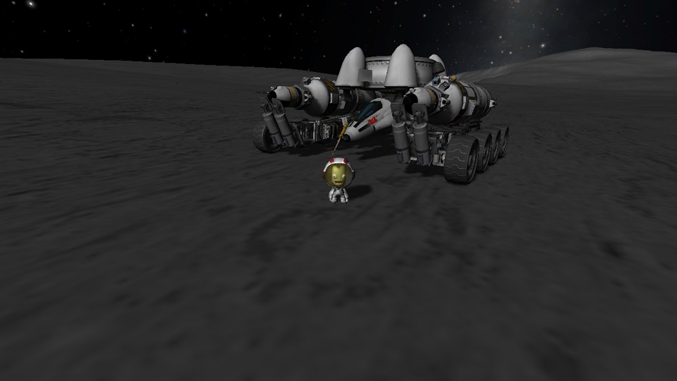 boni01: [^boni01] #kerbal Selfik po ostrym lądowaniu, z ulgą, bo paliwa w skycrane (=zbiornik+4 silniki) zostało za parę zł, akurat tyle, żeby odlecieć nim z łazika. |