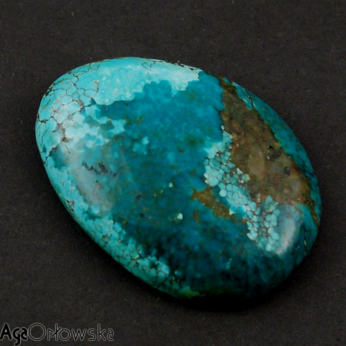 kocimokiem: mówią, że to turkus tybetański. duży, ok 30 mm. prawdopodobnie będzie do ubrania w srebro, bo klientka kręci nosem. do kogoś mówi. #biżuteria #rekodzieło #zprodukcji |