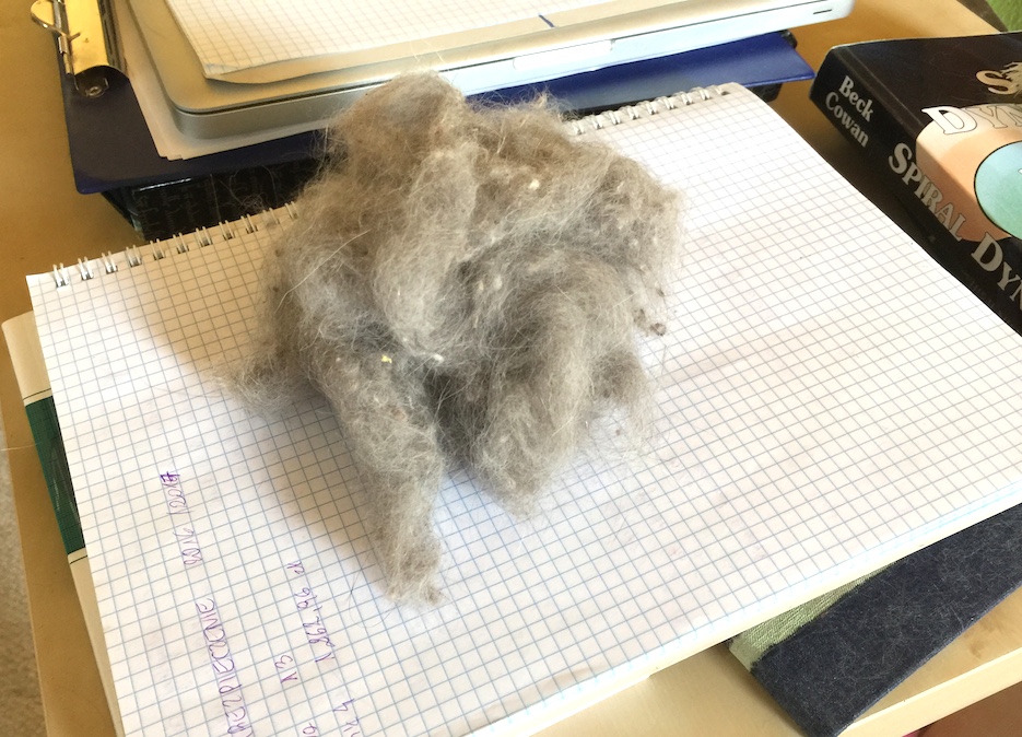 tygryziolek: naprawdę, szczerze i z całego serca nie znoszę wyczesywać kociej sierści z rzeczy przed praniem. to urobek z poszwy na kołdrę. lato jest, gorąco, więc wieczorem i rano w komplecie meldują sie wszystkie do łóżka, wiadomo |