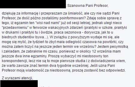 ^klara] Nie znam sprawy, ale biorąc pod uwagę liczne znane mi przykłady korespondencji ze studentami, to ten przypadek jest jednym ze zdecydowanie bardziej kulturalnych i konkretnych.
