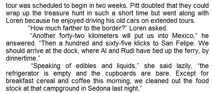 janekr: Taki tekścik #Cussler.a Akcja toczy się w 1998, Loren jest członkinią kongresu USA, razem z Pittem jadą szukać skarbów. |