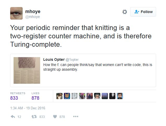 ^srebrna: [^yaal] Pętle są, liczniki są, warunki są, wyłapywanie i korekcja błędów jest, subrutyny są (w szydełkowaniu dany rodzaj słupka to czasem osobna procedura!)... Tylko coś wskaźników nie widzę ;) 2016/12/19 13:00:45