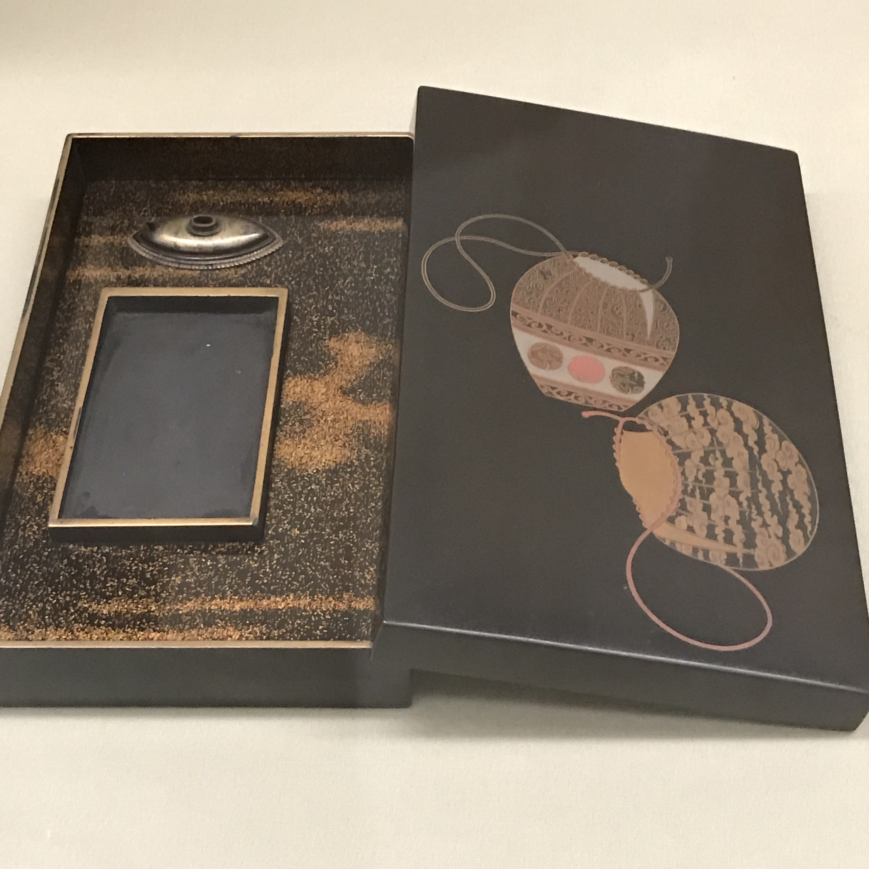 aniaklara: [^aniaklara] a tak wygląda trochę bardziej typowe suzuri: z czarnego kamienia, włożone do suzuribako, czyli pudełka na suzuri i inne utensylia #tokio |
