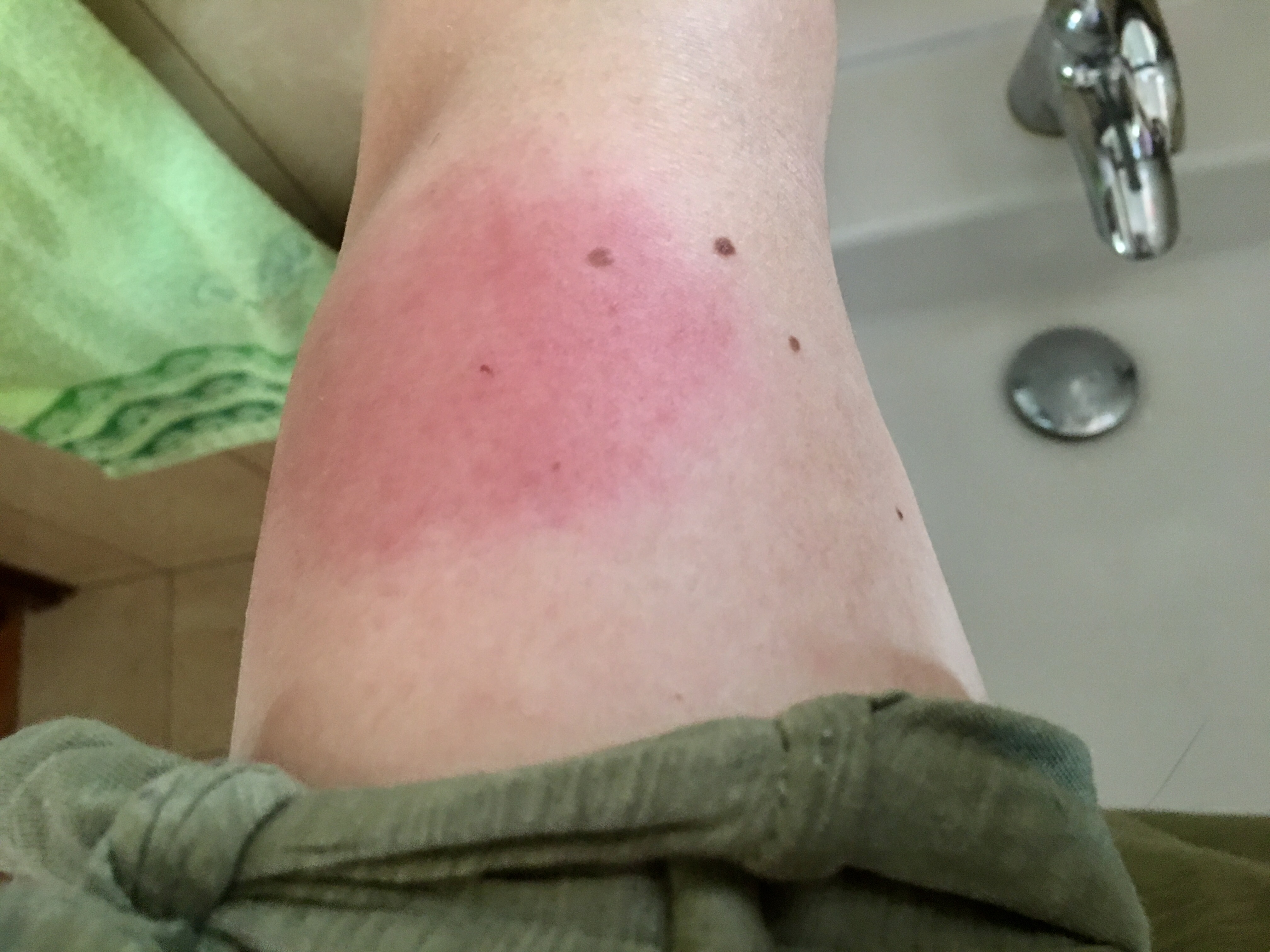 finka: przedramie wyglada tak ://. ile ja sie do cholery mam z tym bujac :/. oraz wczoraj mnie kolejne dwa ugryzly na spacerze z psem wiec poza przedramieniem i udem robia mi sie takie cosie na ramieniu i lydce |