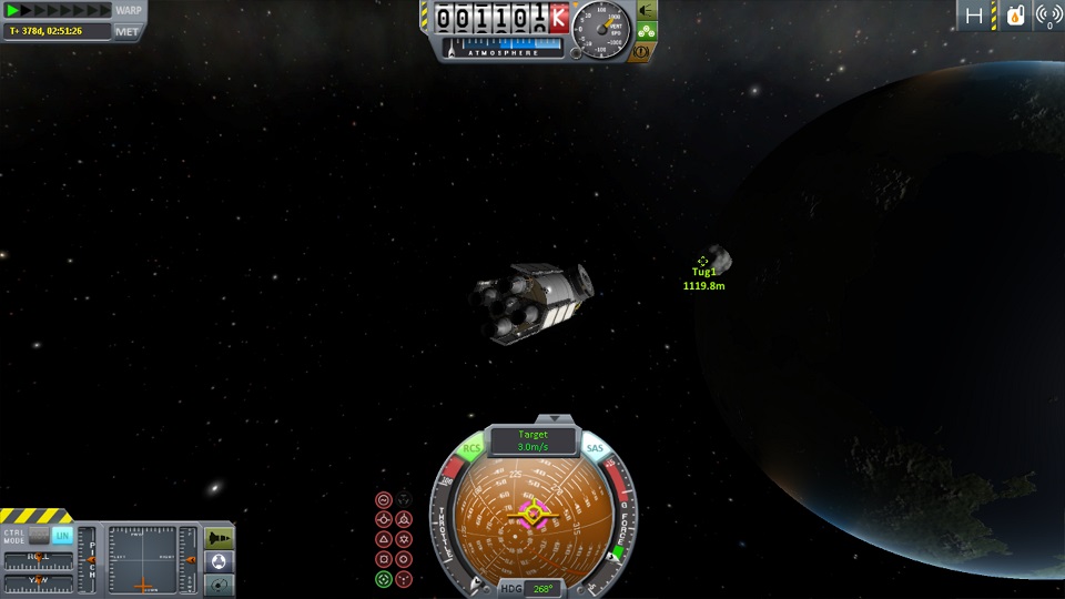 boni01: [^boni01] Jest nieźle i stabilnie, latamy na elipsie i podciągamy drugi "holownik", bo trzeba przyczepić więcej dużo silników, żeby tę "bryłkę" 3400 ton sprowadzić sensownie na ładną orbitę. |