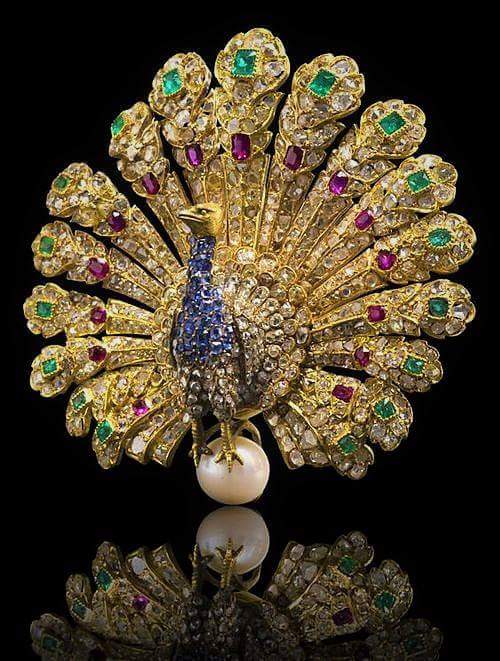 malalai: Blink blink #tga Peacock brooch by Gustave Baugrand with diamonds, emeralds, rubies, sapphires and pearl; ca 1865 |