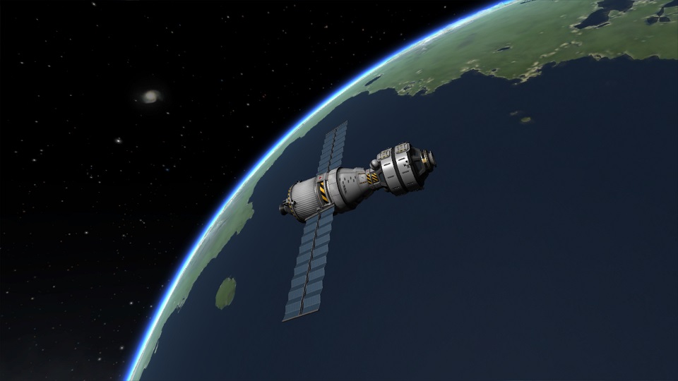 boni01: [^boni01] Spoko wyleciał na LKO; pierwszy stopień gibał się trochę wzg. drugiego, można było dać więcej srebrnej taśmy. Funkcjonalnie to nawet jest wierny, tyle, że kulisty przedział załogowy zrobiony jest deko "sztucznie" #kerbal |