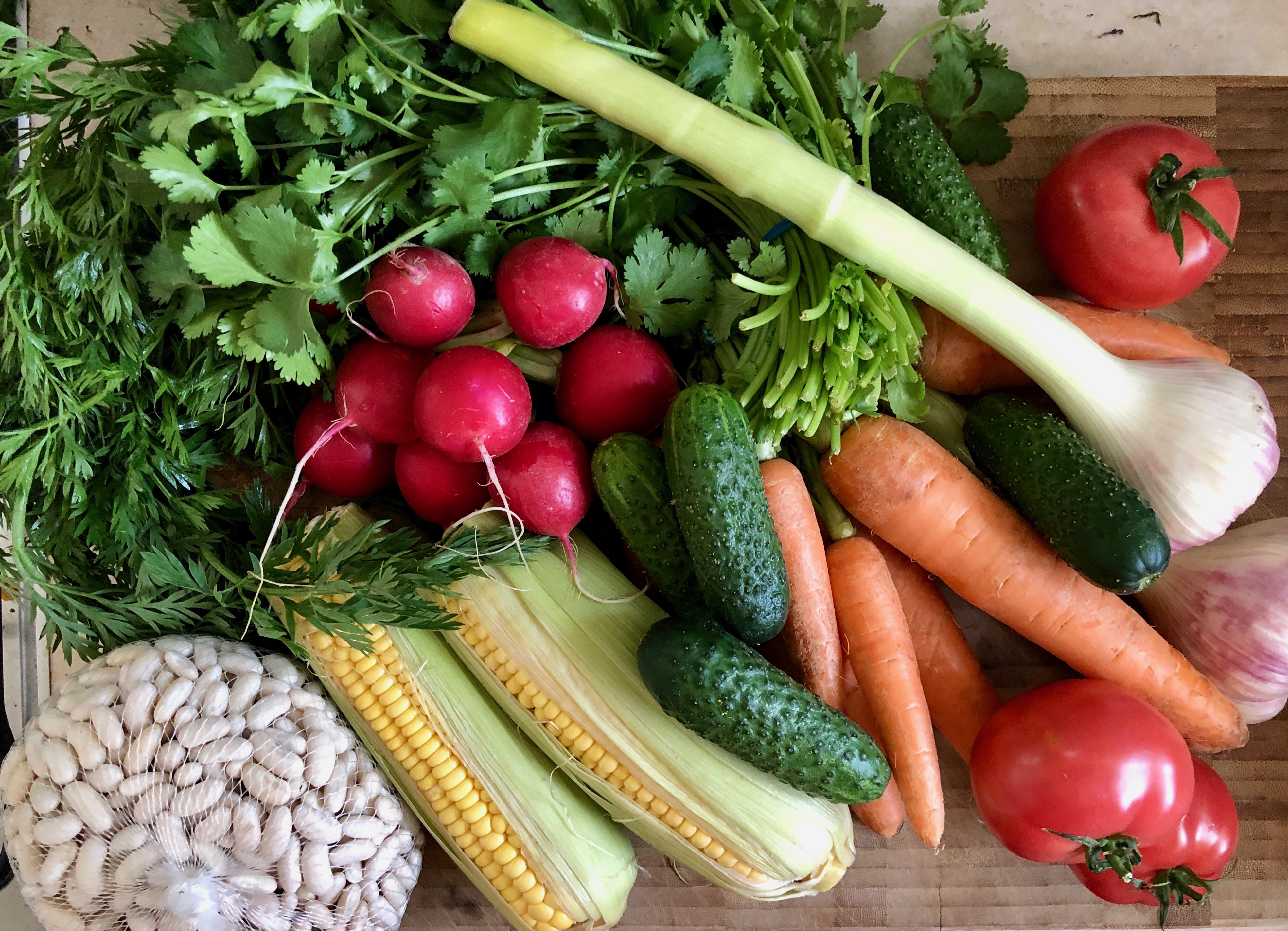 aniaklara: dzisiejsze zakupy pod Halą Mirowską mało egzotyczne, ale i tak obiecujące: młode marcheweczki, kolendra, pietruszka, rzodkiewki, szczypiorek, malinowe pomidory, czosnek, kukurydza, fasolka, ogórki #warzywka #gastrofaza |