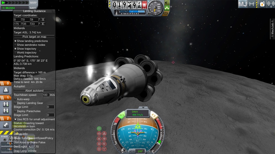 boni01: [^boni01] No pod wrażeniem jestem, cel już na horyzoncie, autopilot koryguje jak podupcony, wygląda to zajefajnie. BTW MechJeb jest też "fizycznym" modułem w grze, to ten czubek rakiety z "okiem", on się nim patrzy... #kerbal |
