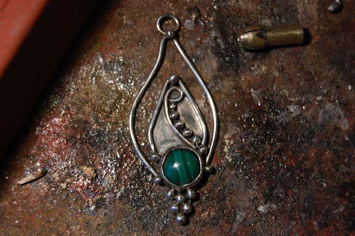 kocimokiem: #zprodukcji #biżuteria #rękodzieło. brudne i w zasadzie jeszcze ciepłe. płomyk a la Bali. z malachitem (oryginalnym, a nie rekonstruowanym) |