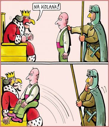 ] Aaaaaaaaaaaaaaaaahahahaha!! Że też sam nigdy tego nie wymyśliłem. Teraz to bawi Kazika tekst: "Na kolana chamy, jebane nieroby". #
