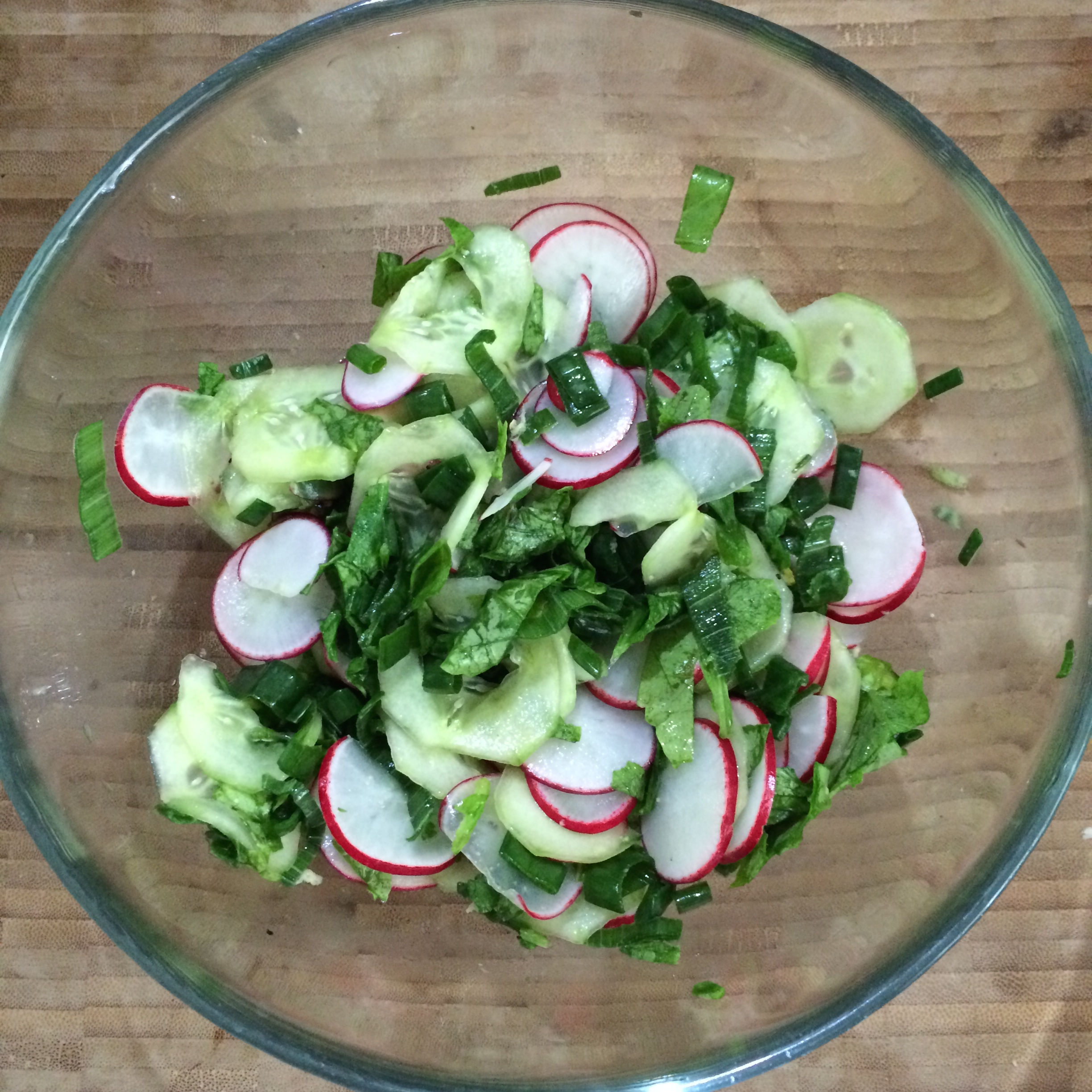 aniaklara: #gastrofaza sałatka z ogórków, rzodkiewek, liści rzodkiewek, szczypioru, z dressingiem z utartego i wyciśniętego imbiru i octu, jest osom jak coś bardzo osom; czekam aż ktoś mi się oświadczy |
