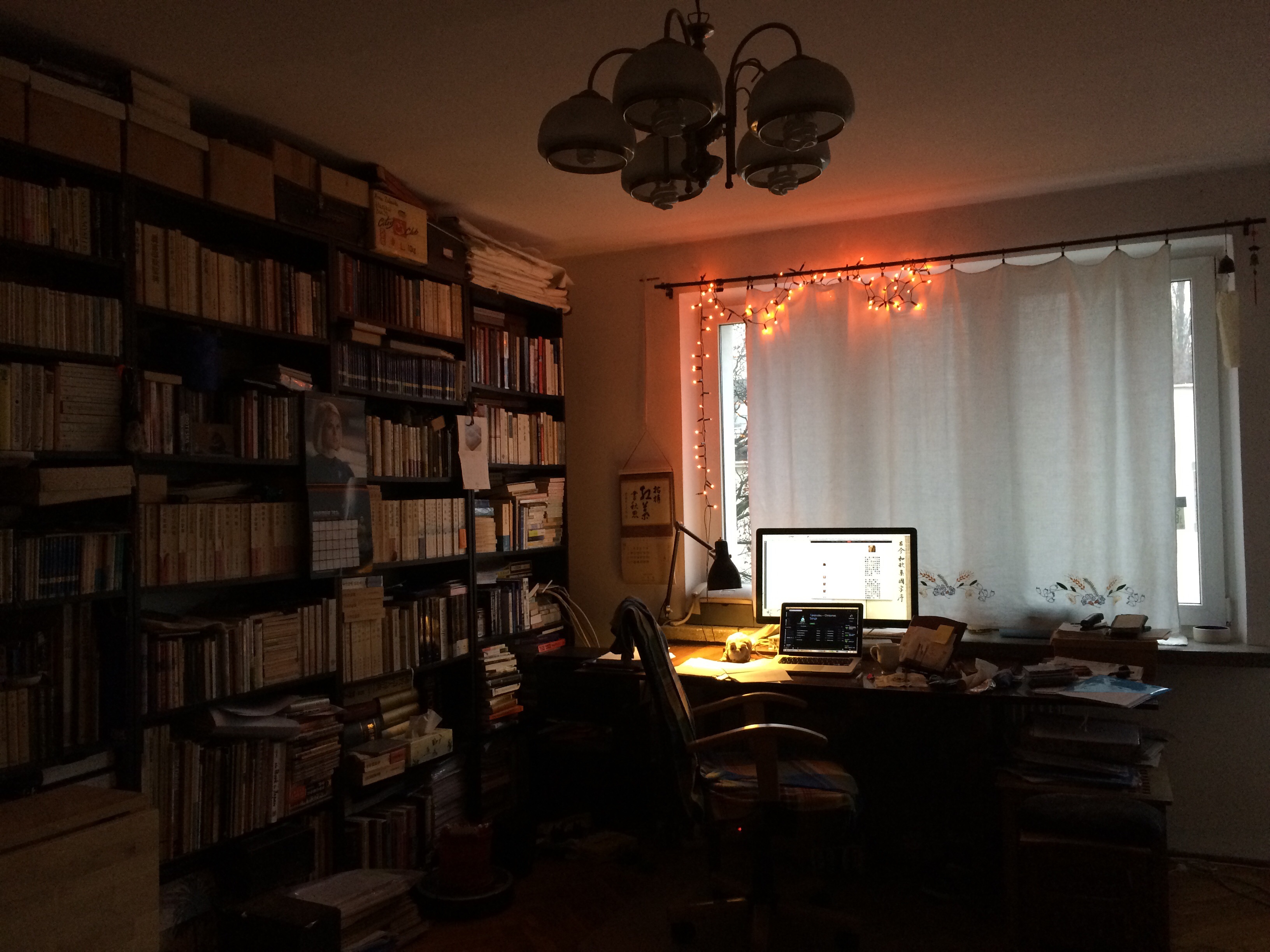 aniaklara: żeby trochę rozjaśnić te ciemności jesienne, powoli inicjuję lampki, światełka i świeczniki: dziś powiesiłam lampki nad oknem |