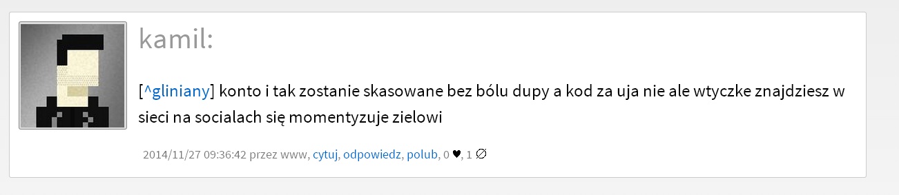 wiku: [^kamil] nie bądź żyła, daj linka do wtyczki, niech se chłopak zarobi |