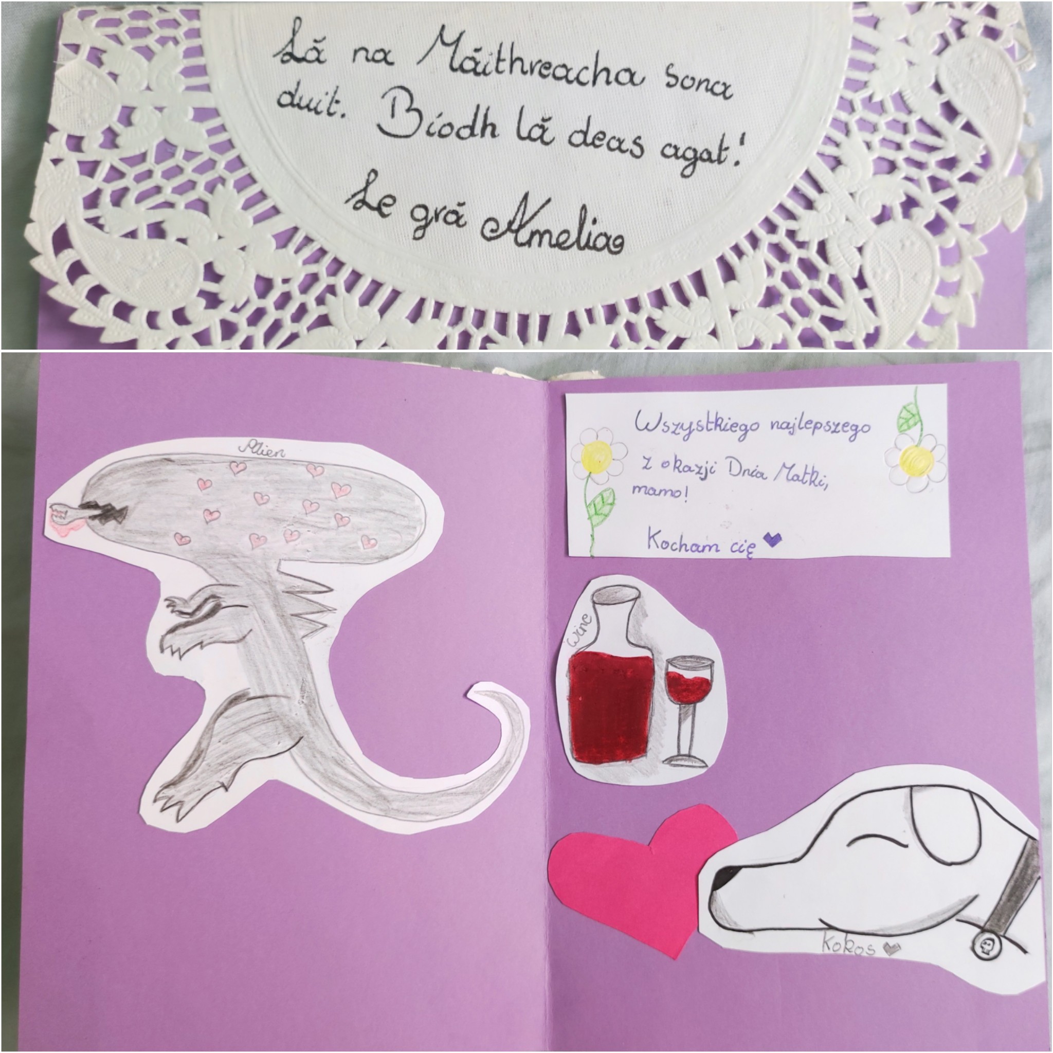 Dzień Matki. Dostałam kartkę z winem, bo jak stwierdziła #Gnomica należy mi się dziś lampka #kwik #macierzyństwo