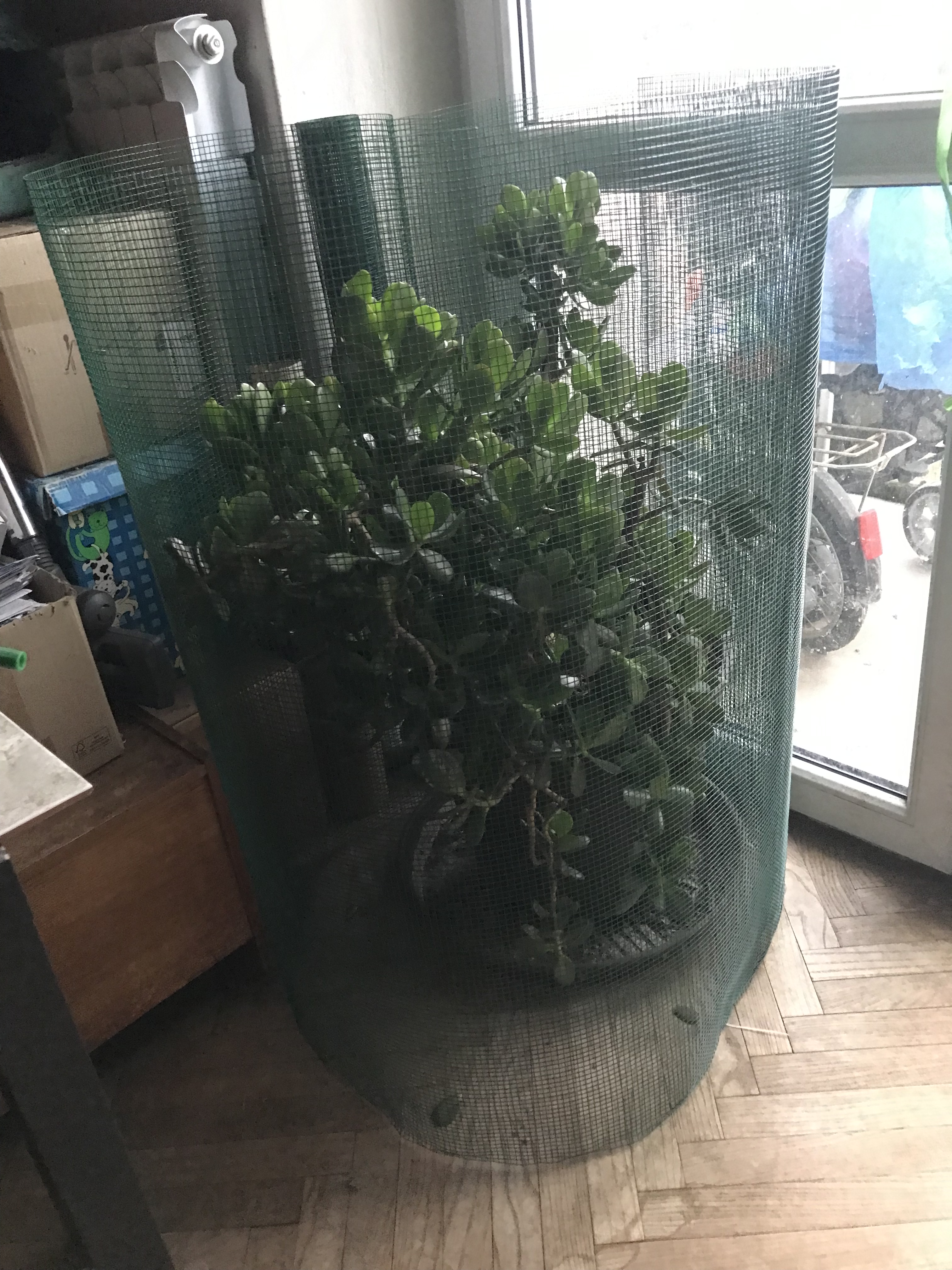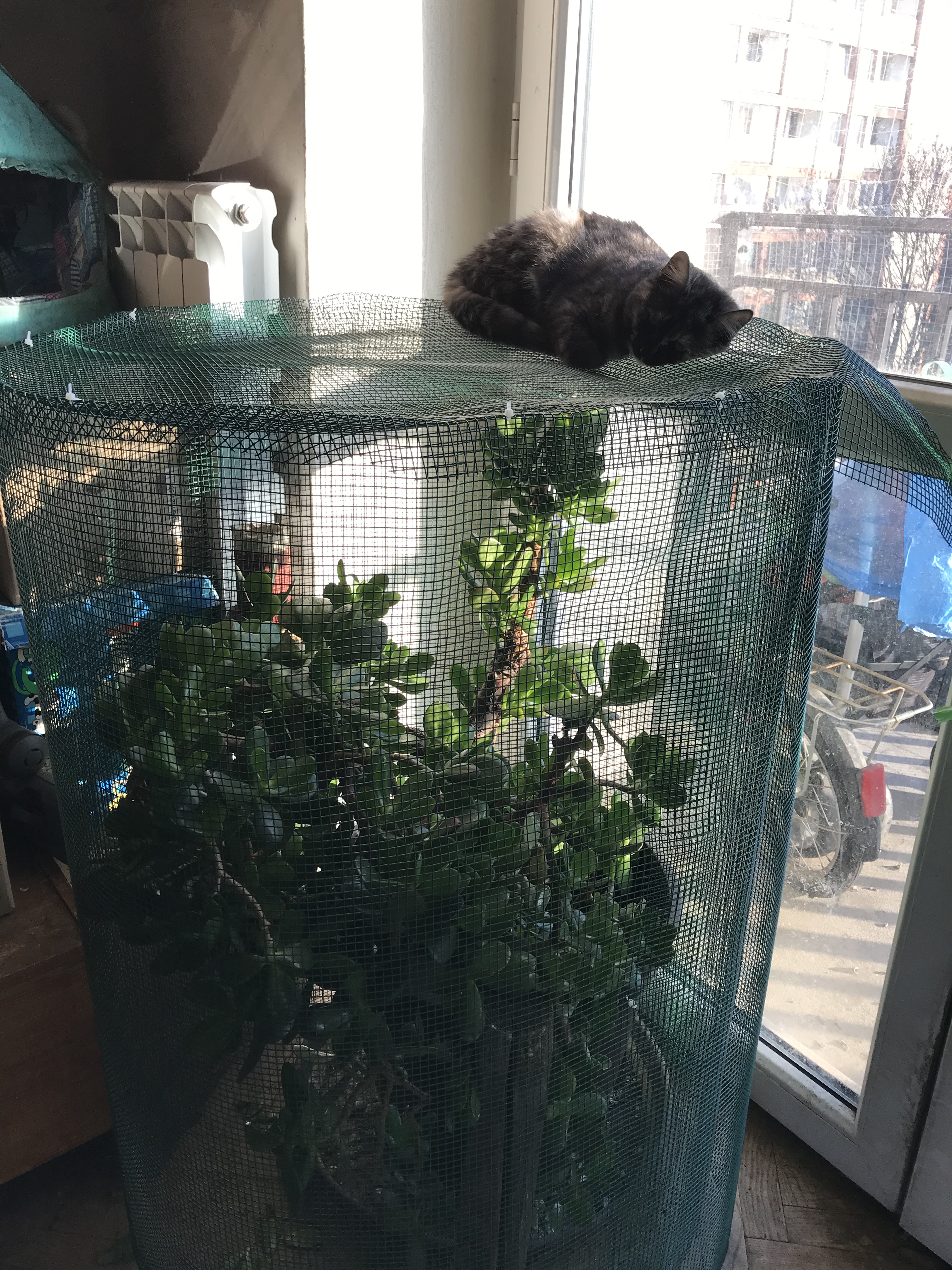 kociaciocia: Odgapiłam u ^deli siatki na rozsadzie, owinęłam grubosza, który pięknie odżył pod nieobecność szkodników. No i dzisiaj rano zdjęłam #sara z góry siatki :( |
