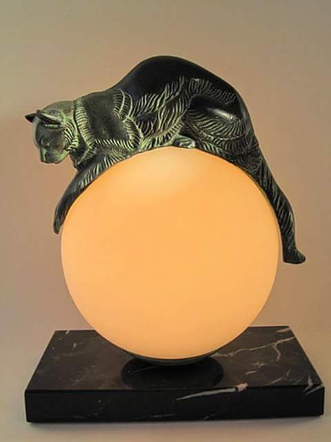 #adc Equilibre Cat Lamp by Max LeVerrier of France, 1920 #pokakota