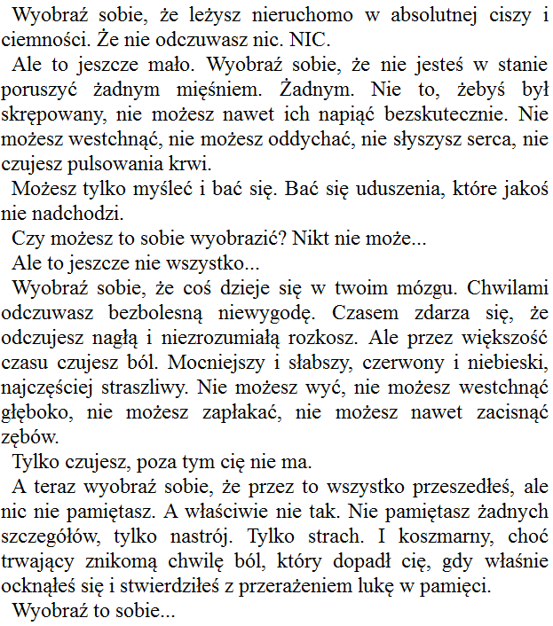 [^janekr] #Autopromocja Wywalić wyczyn Elizy, która porwała kosmolot, opuściła go i wylądowała na Marsie w prowizorce. A Dukaj chwalił ten fragment jako najlepszy...