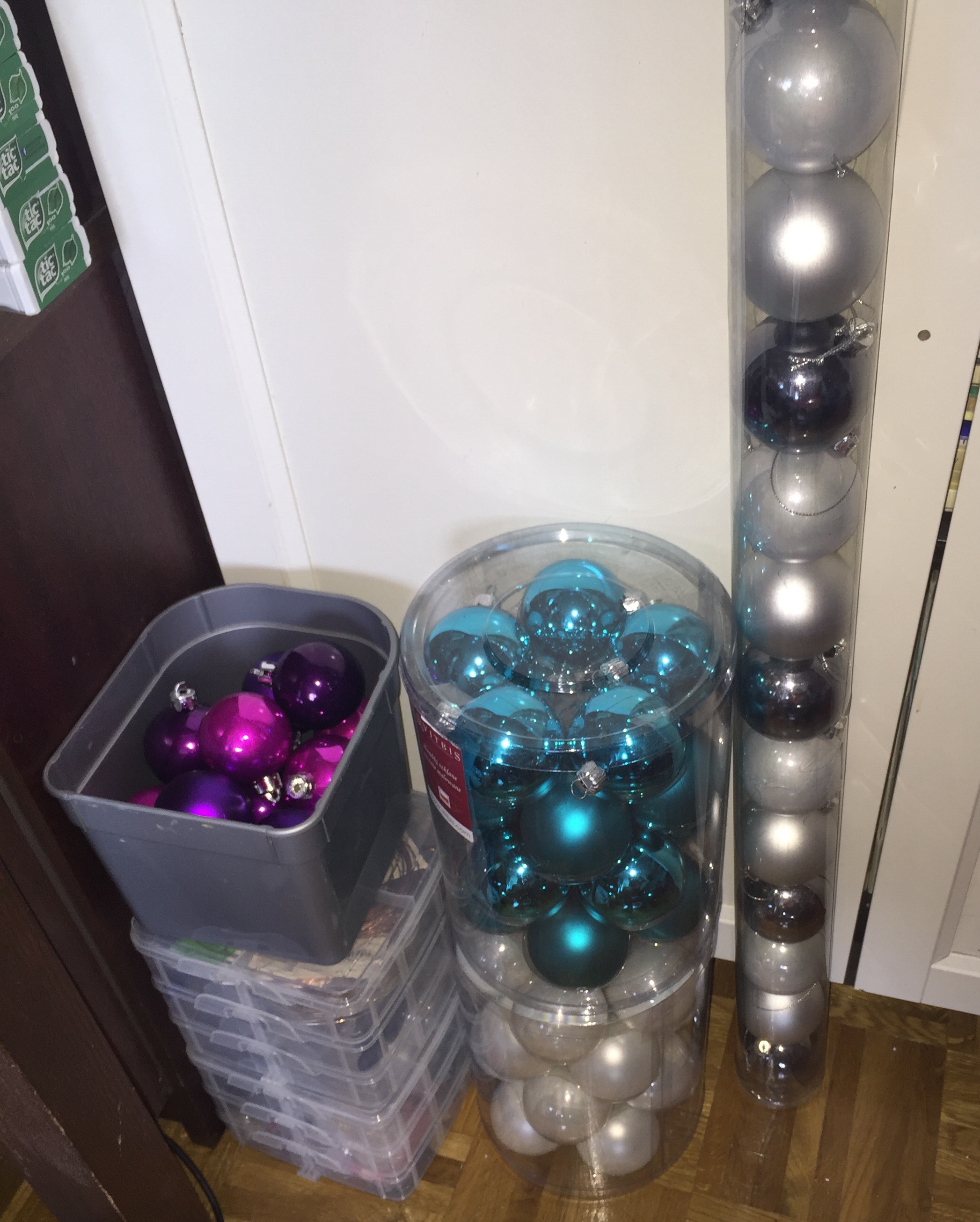 Fioletowe i srebrne plastiki, niebieskie i białe szkło. Chyba tyle na ten rok. Teraz zostaje trzymać kciuki, żeby coś się jeszcze sprzedało. #bombki