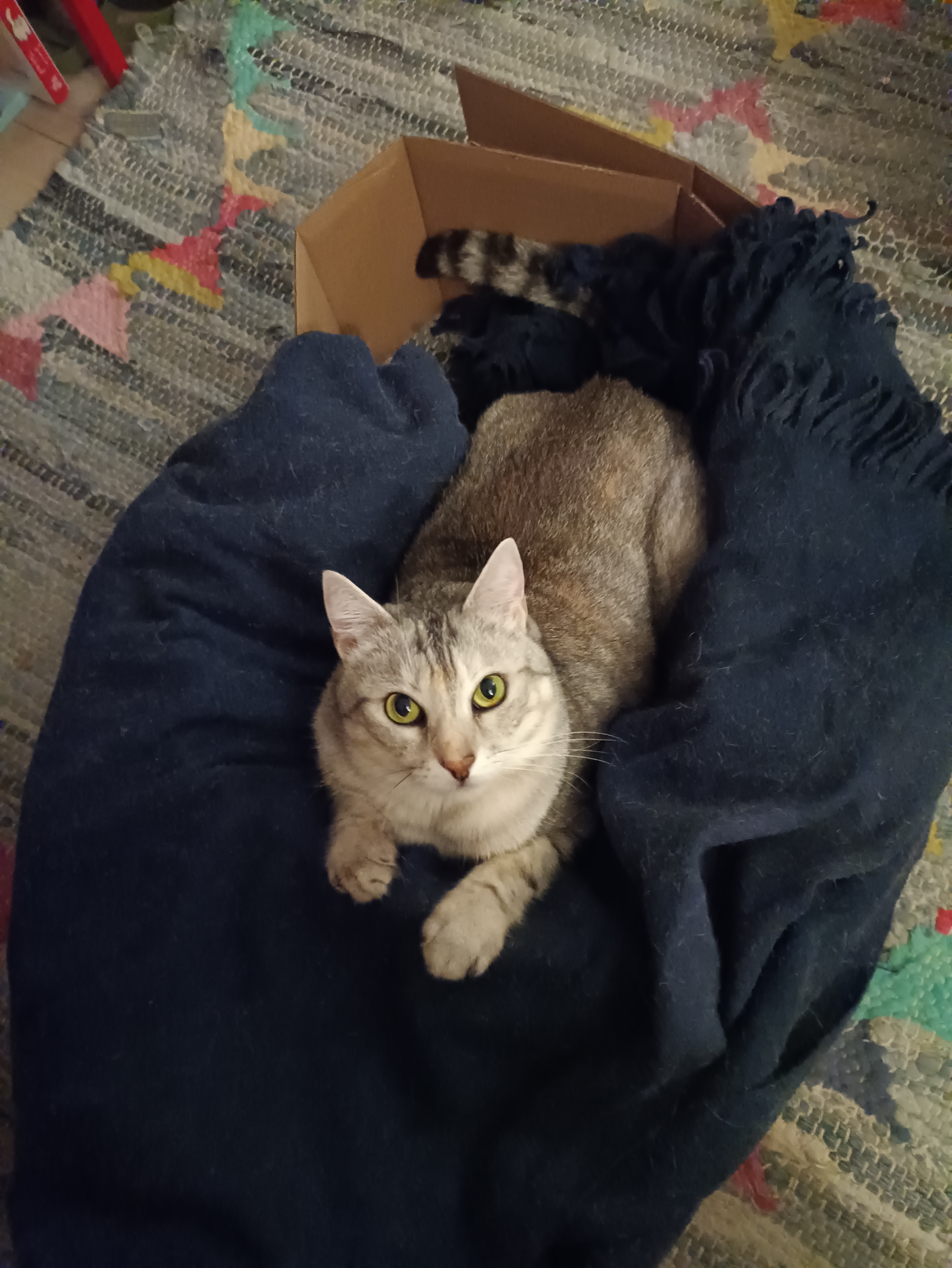 klara: Biedne kitku źle się czuje, więc siedzi w lazience na kafelkach. Może chłodno, a może ciemno? Ma ciepłe futerko niestety. Ale zjadła tabletkę bez problemu #catCate |