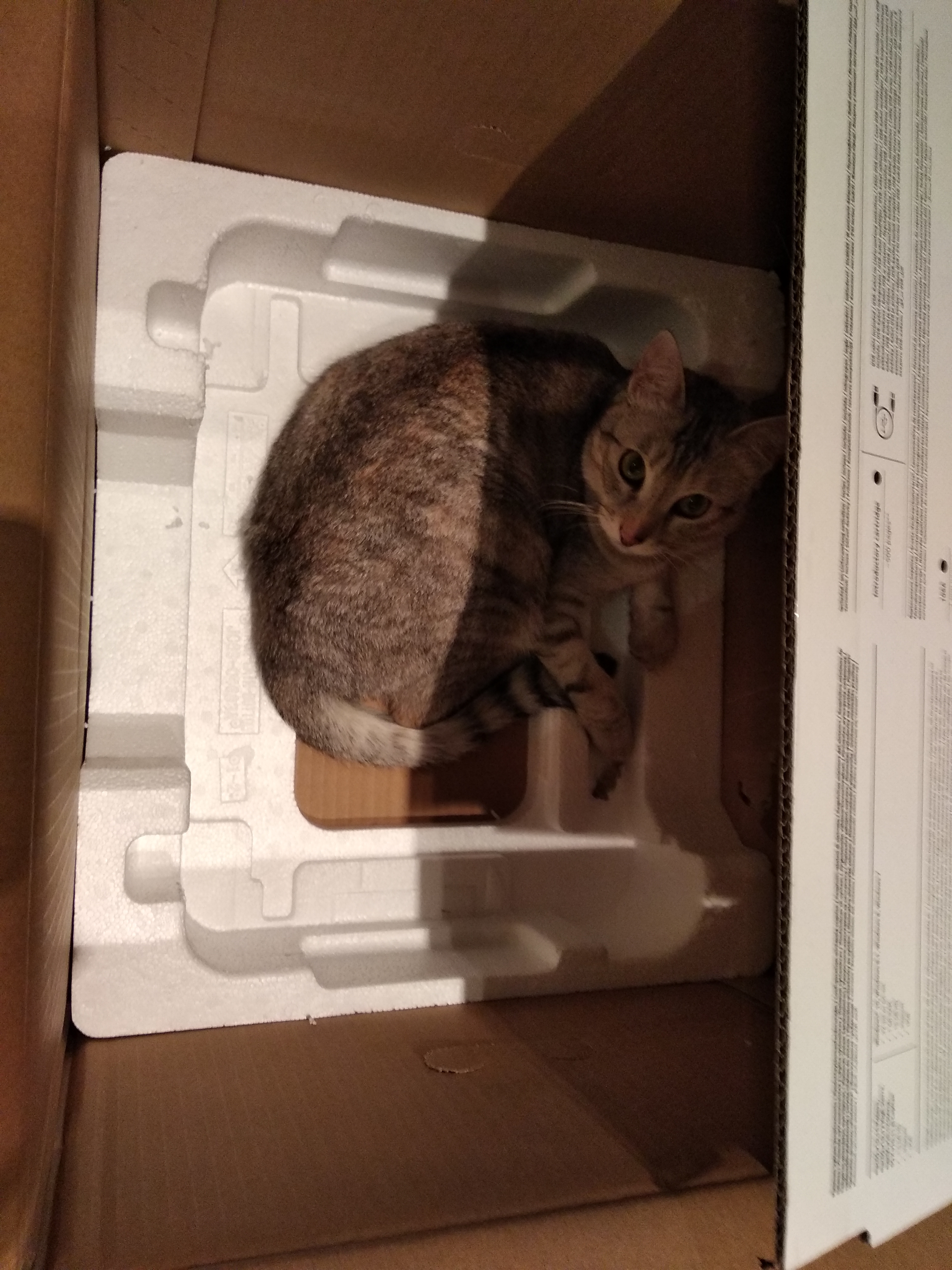 Księżniczka dostała karton po drukarce i jest bardzo, bardzo szczęśliwa #catCate #pokakota
