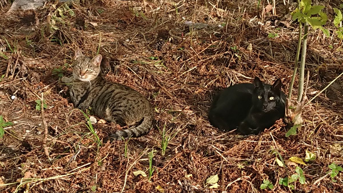 #catspotting dwa #kot.y za żywopłotem pod blokiem, niemizialne #pokakota