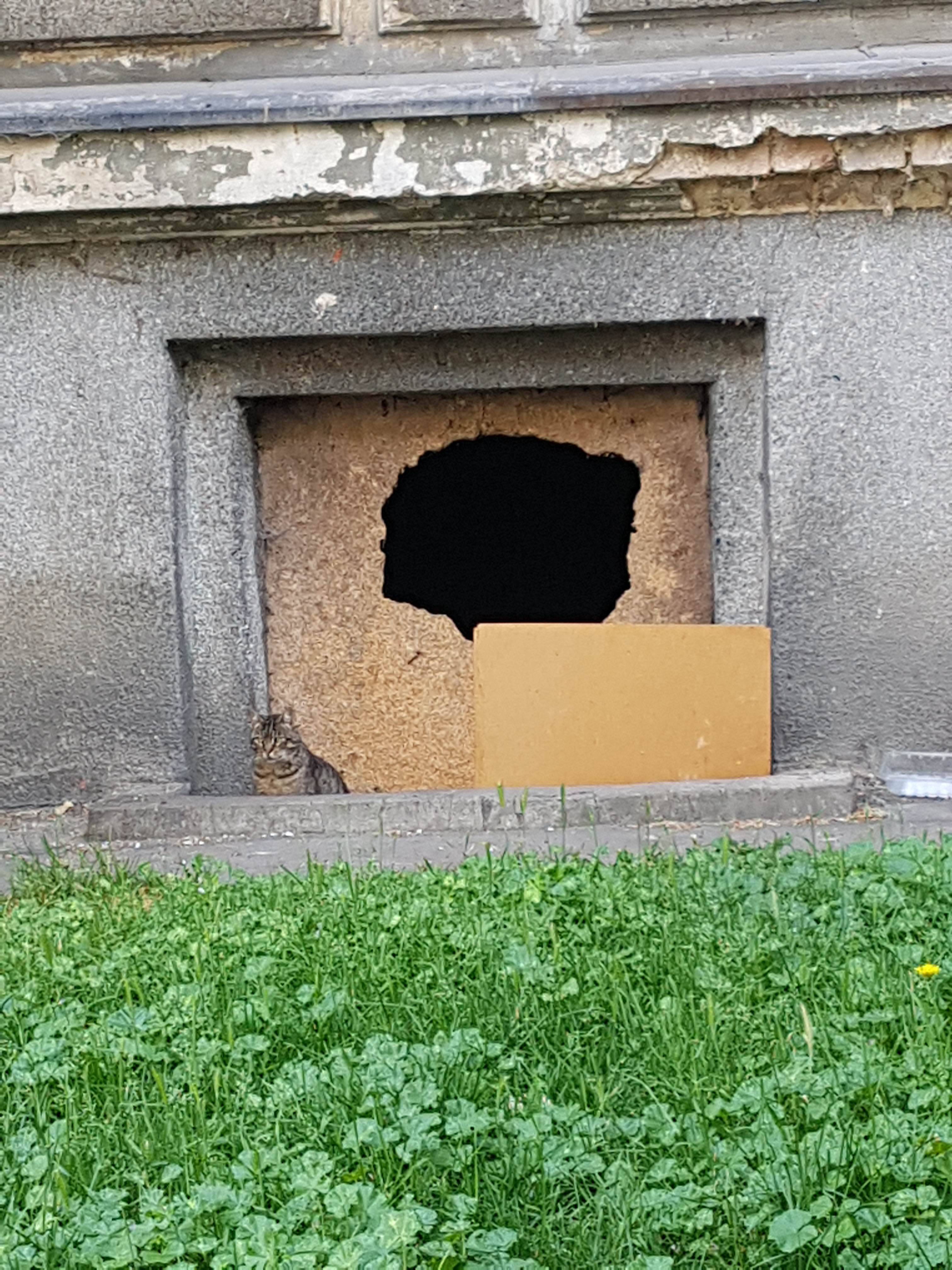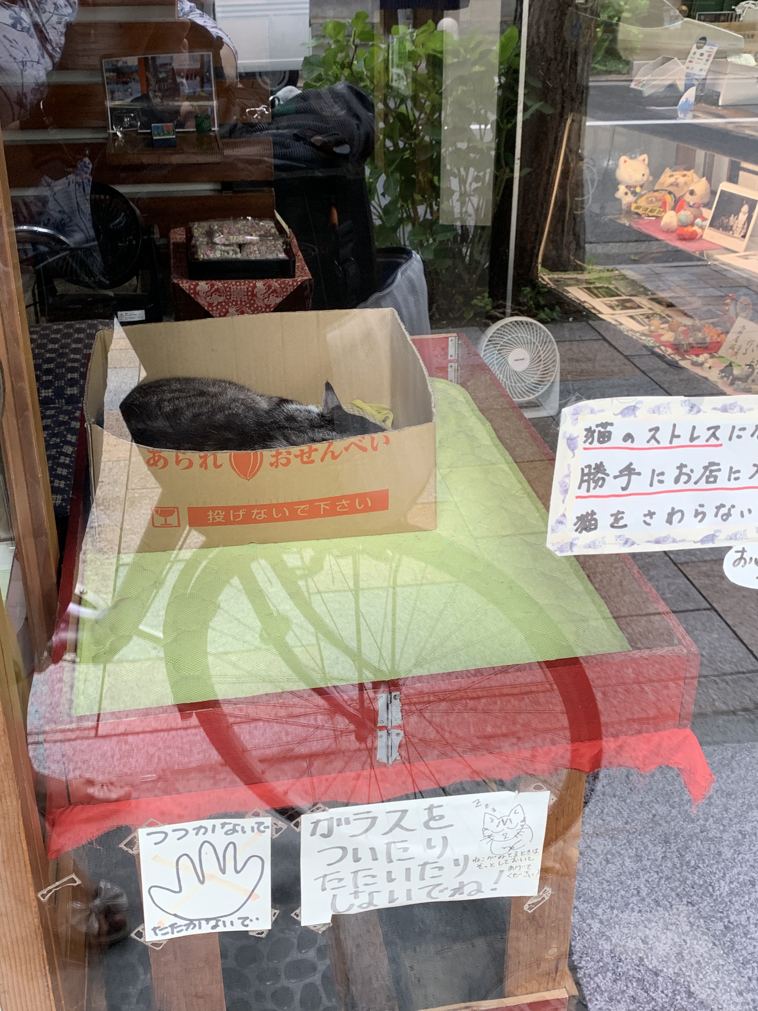 kocio spoczywa w swoim pudelku na wystawie sklepu, a wokół liczne kartki z prośbami, żeby nie stukać, nie przeszkadzać i nie stresować #