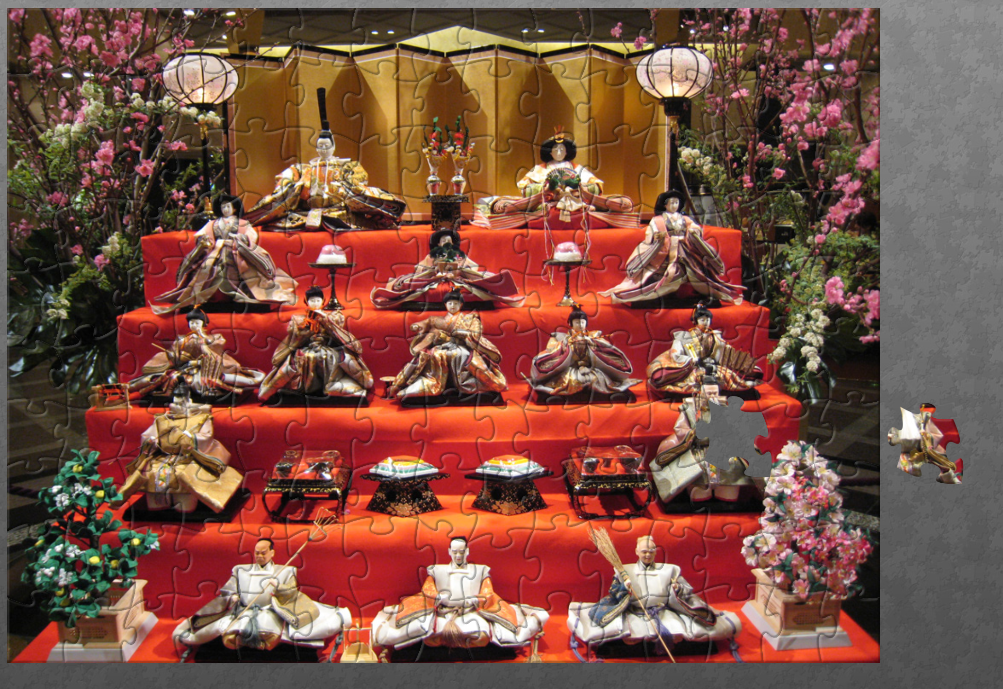 z okazji hina matsuri dzisaj wystawa lalek, na górze para cesarska a niżej grajkowie i inne samy dworu #