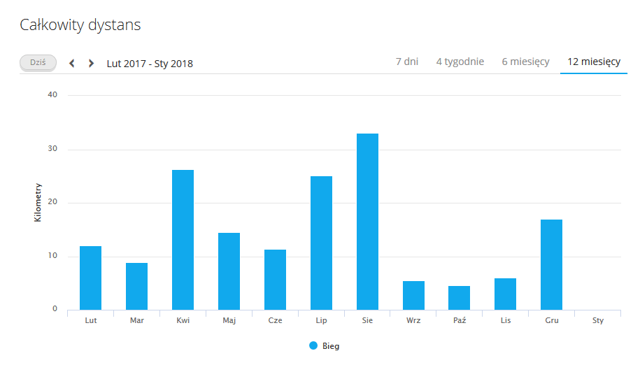 To też się pochwalę, chociaż nie za bardzo jest czym :) w 2017 r. przebiegłem około 170 km #