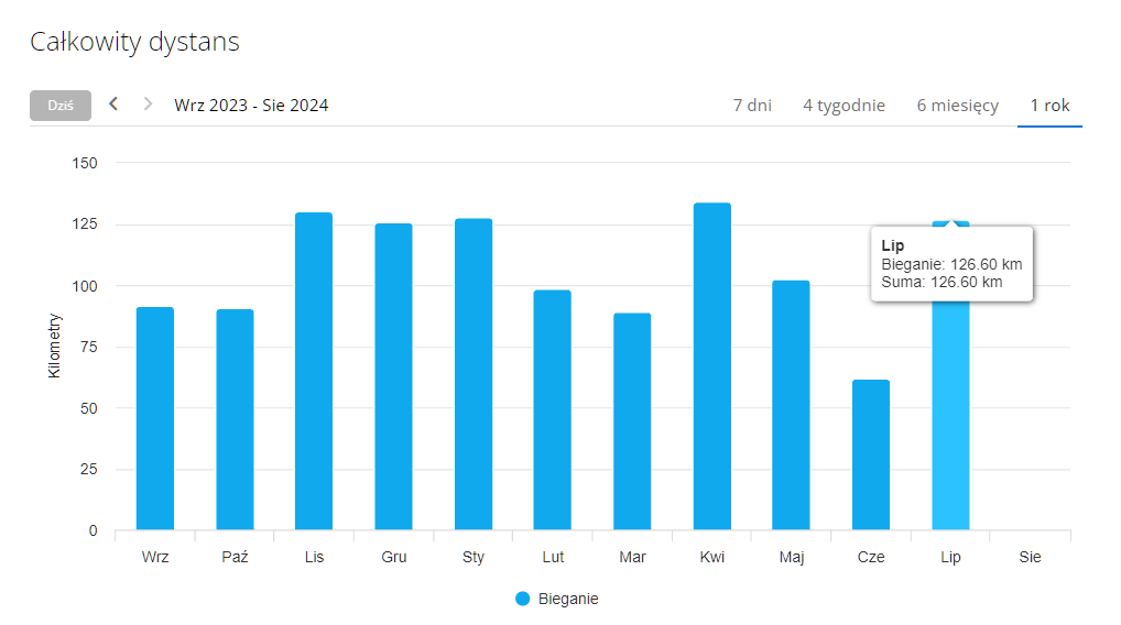 Wczoraj bez treningu ale i tak w lipcu było nieźle - 126km, jedynie w kwietniu było więcej (134km), po 7 miesiącach nastukałem 740km #daromarbiega W sierpniu też powinno być sporo, bo już 10 jest półmaraton :) oo ten [^daromar]
