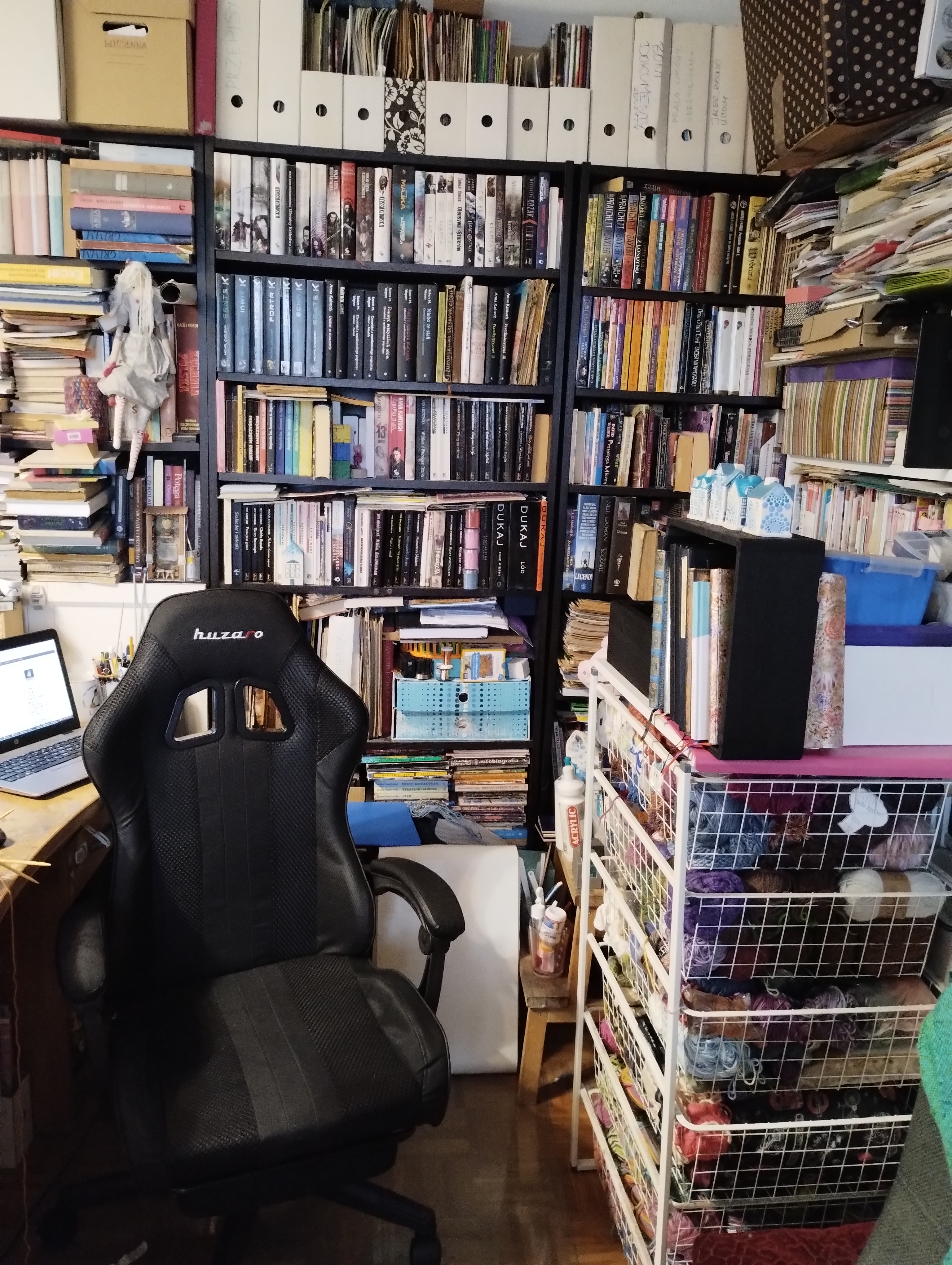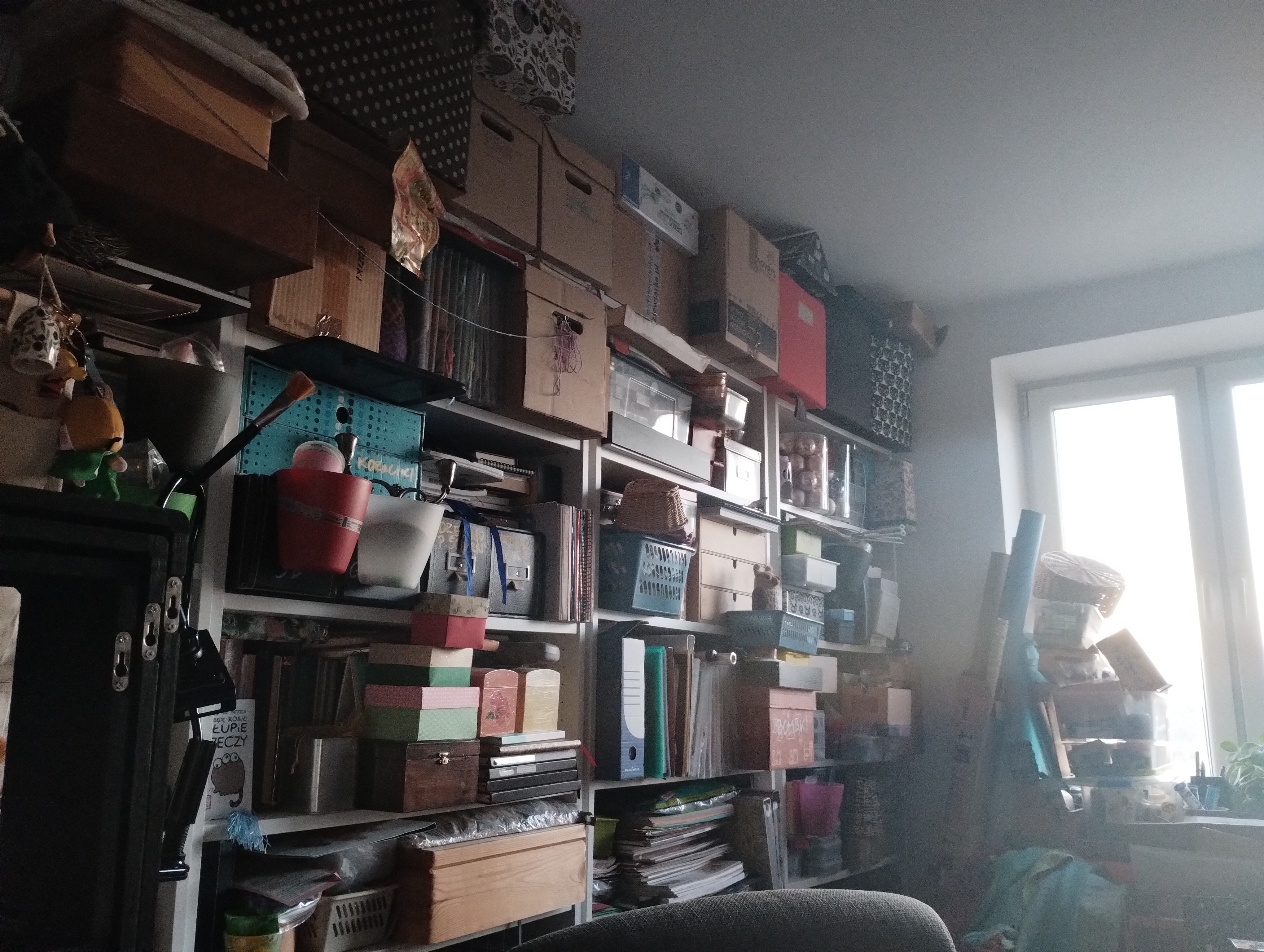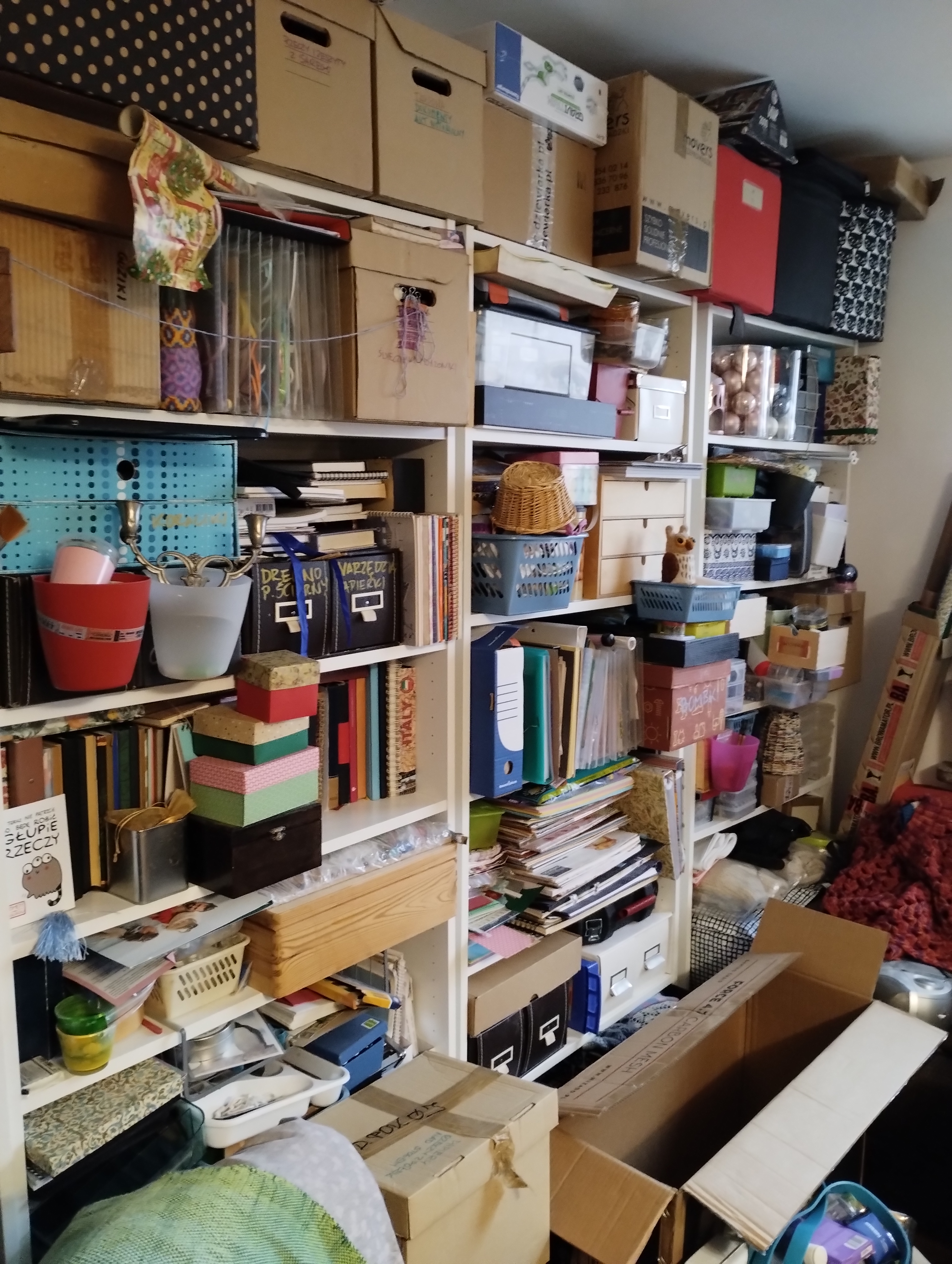 srebrna: wstawilam wczoraj nowy regał i jest już pełen. mam teraz cała ściane robotek. zostalo jeszcze troche miejsca na gorze na jakies plaskie pudełka. #deburdelizacja i guess |