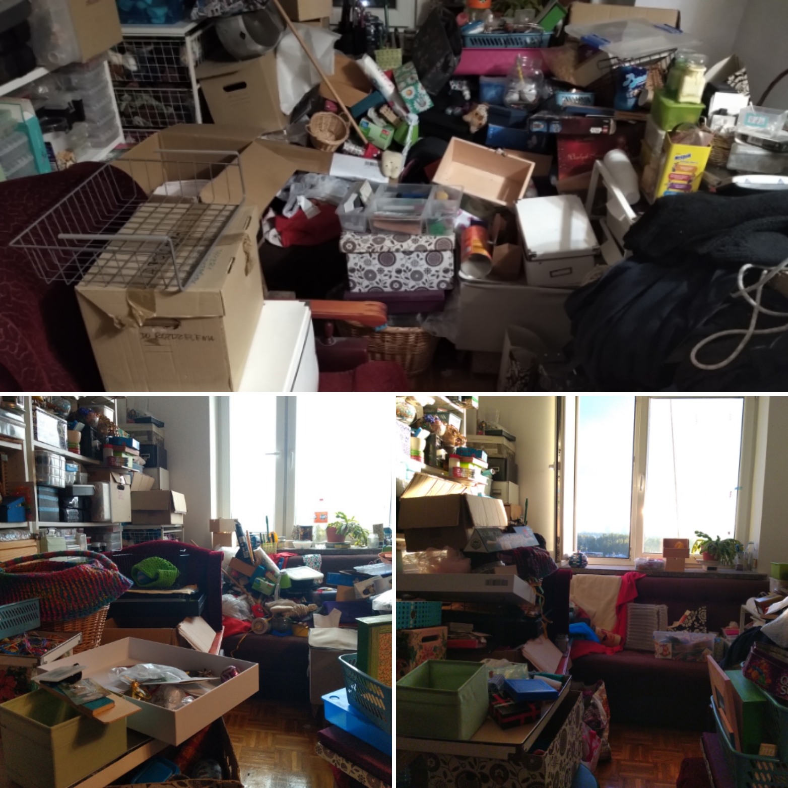 srebrna: #deburdelizacja Część z tego jeszcze się da upchnąć w pudłach, to i owo się zmieści, ale kurde, no. A jednoczesnie tyle wywaliłam! Gdzie to wszystko wcześniej siedziało? (wiem, biurko stało inaczej i zasłaniało...) |
