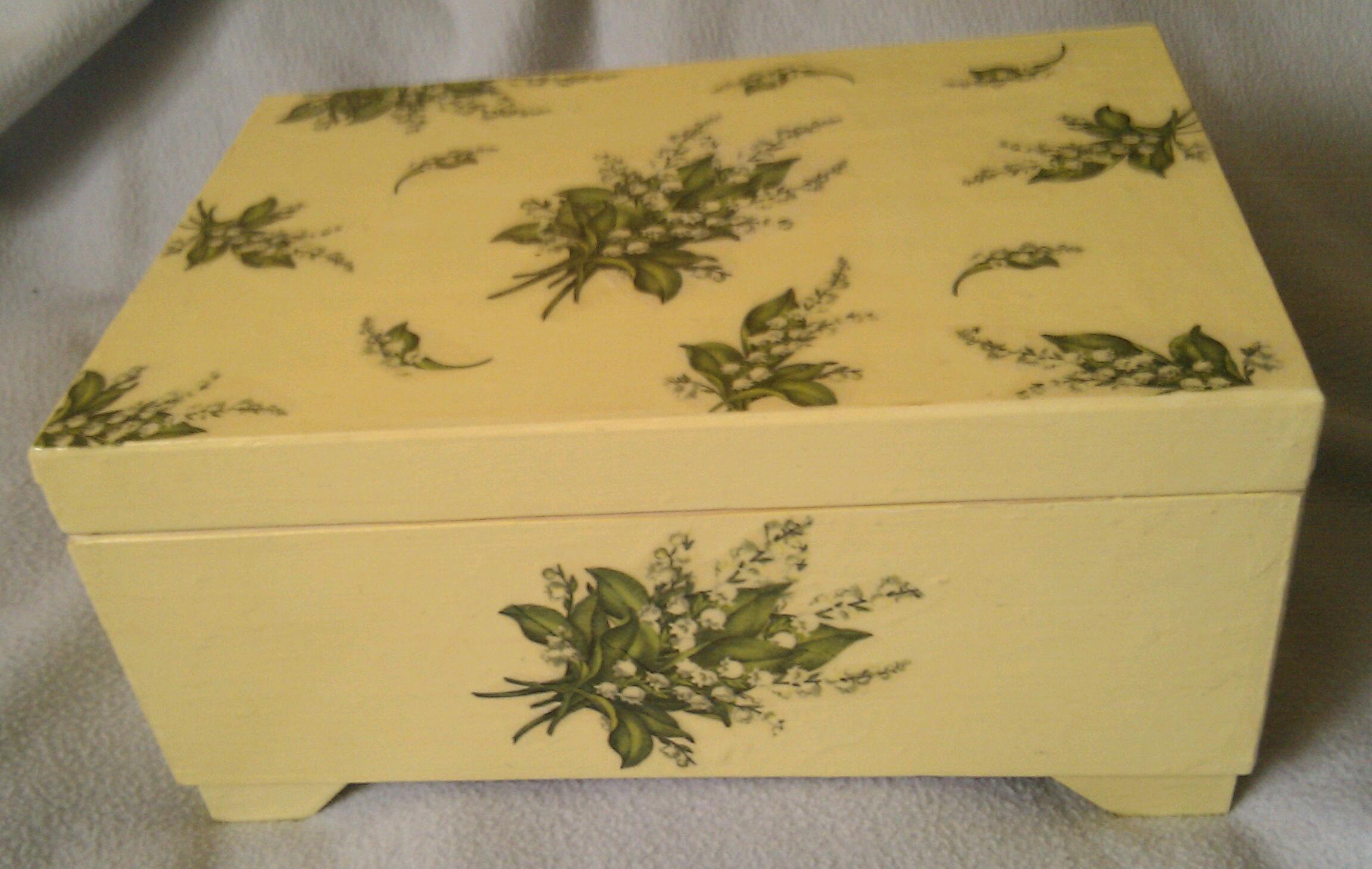srebrna: #decoupage na warsztacie wykończenie skrzynki w konwalie, 4 pudełek w koty, kuferka w koty, komódki w niebieskie kwiatki, szczotki z kotem, tacki wiosennej |